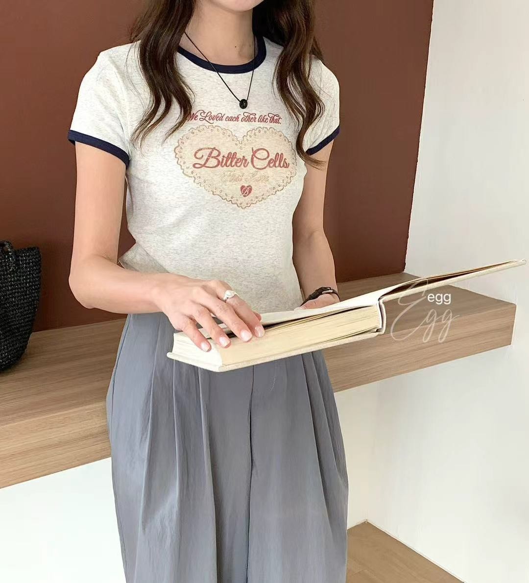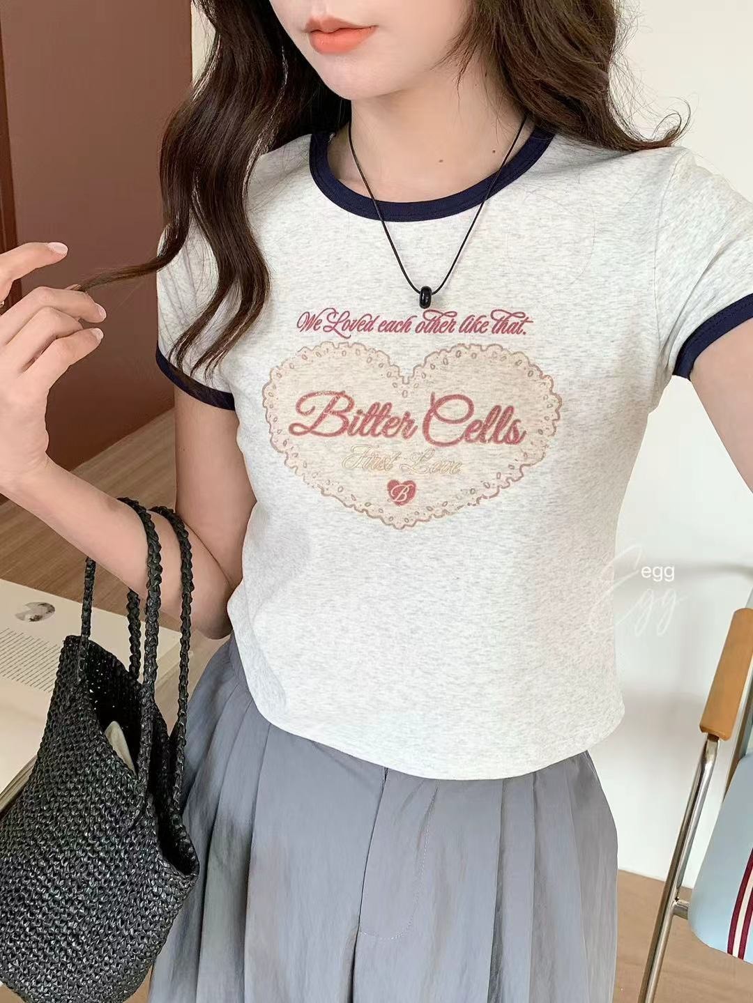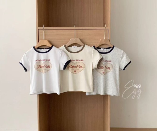 WSD263902女裝愛心bitter cells配色領舒服彈力棉短版上衣