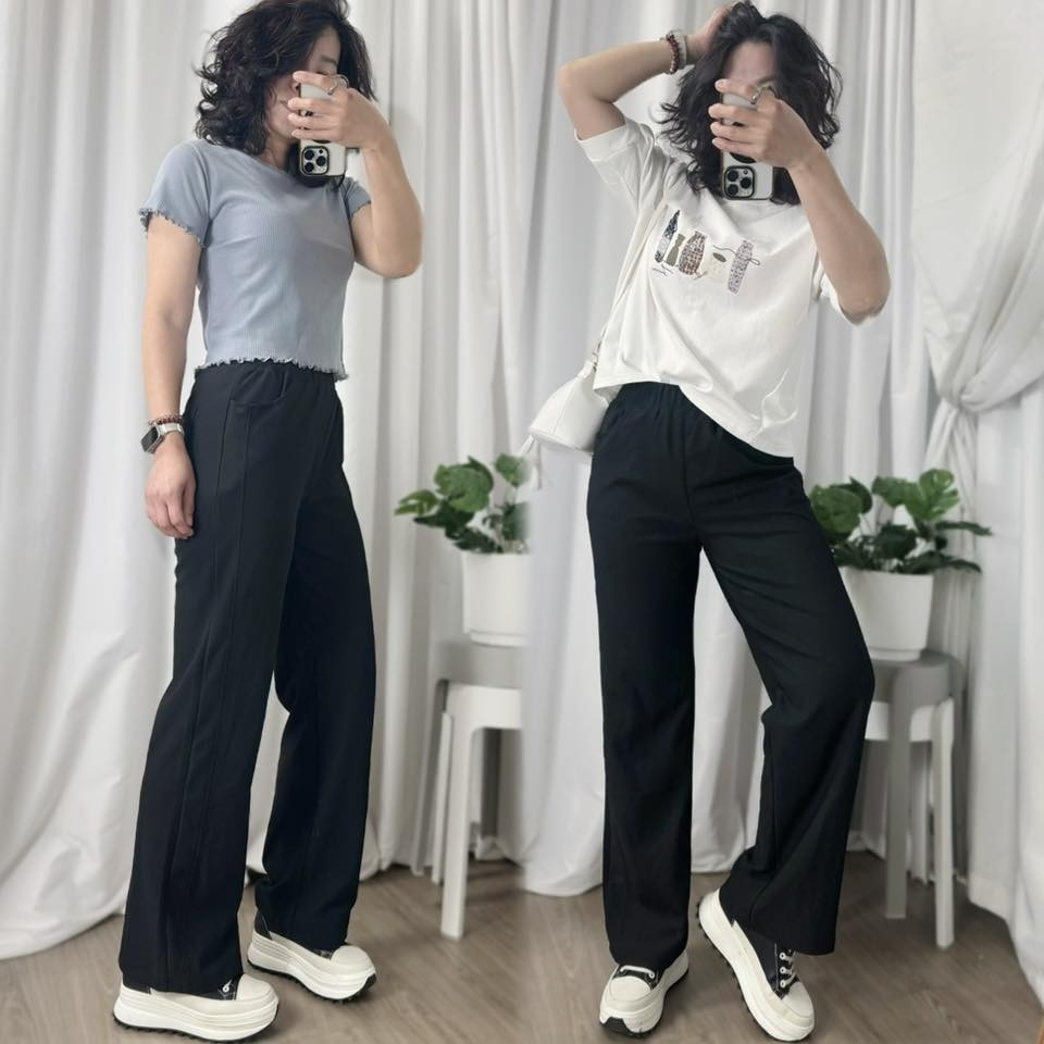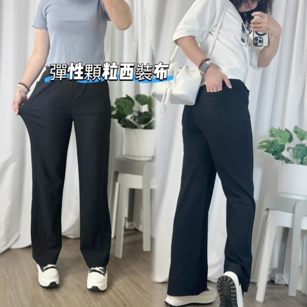 WCH5217F女裝側剪裁黑色寬褲直筒褲