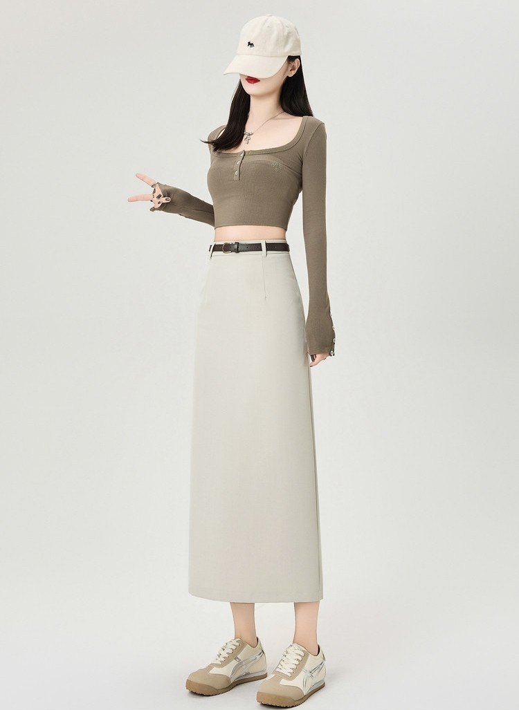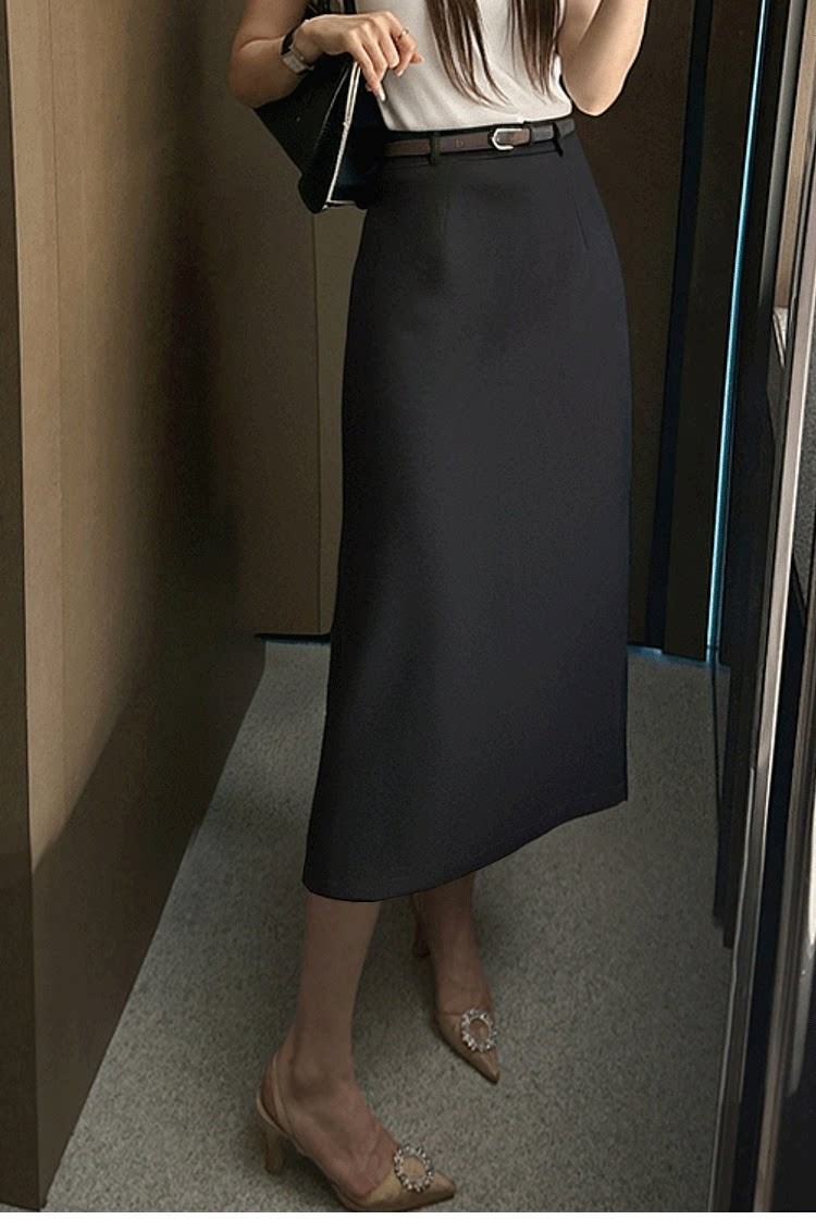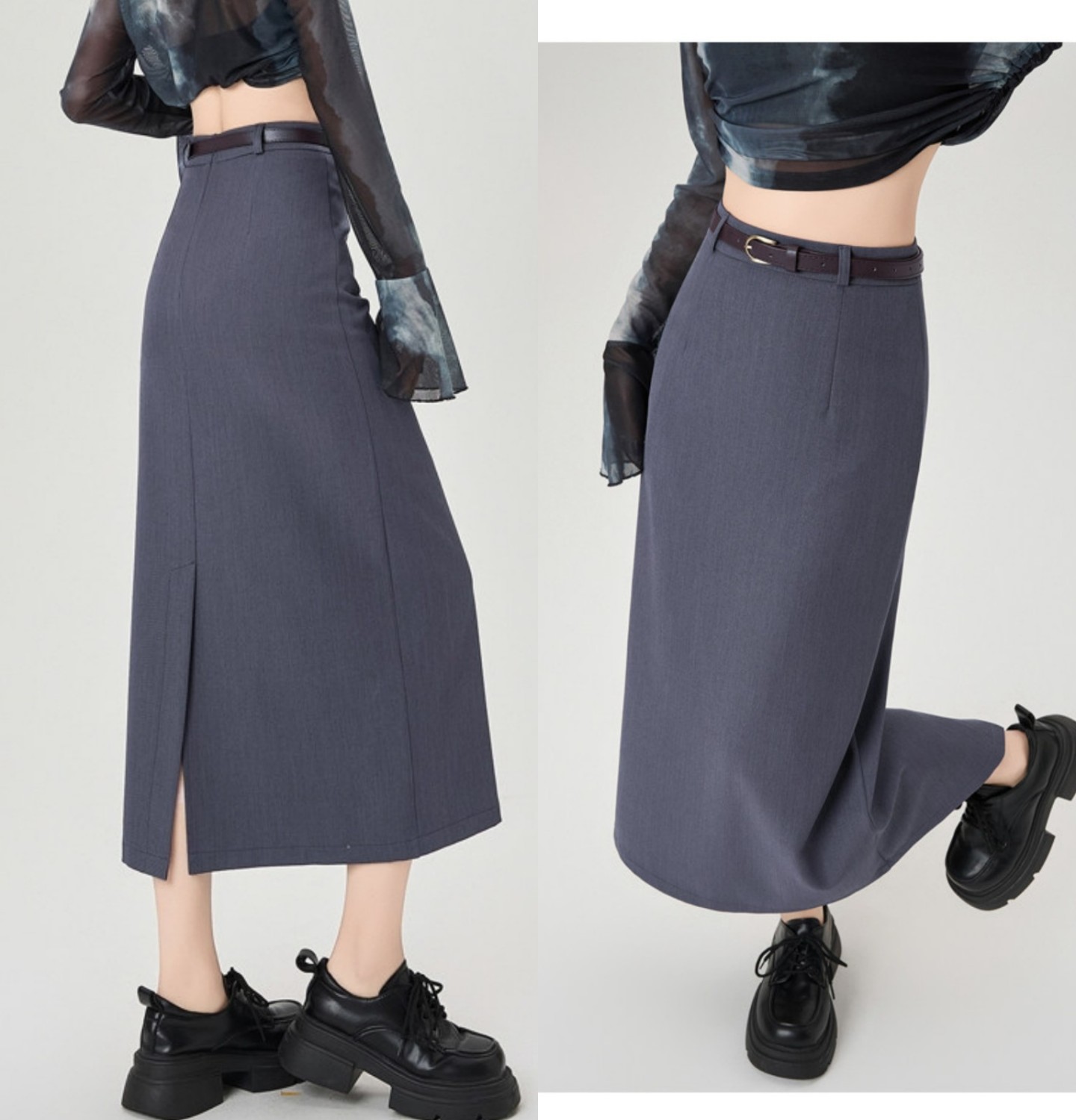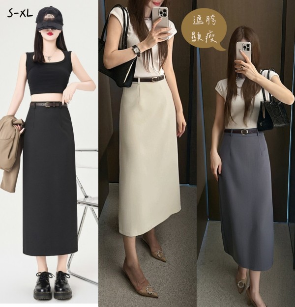 DMF8551女裝遮胯顯瘦直筒後開叉西裝長裙