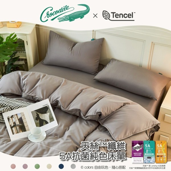 EZ Crocodile 鱷魚天絲纖維5A抗菌純色薄床包鋪棉兩用被四件組