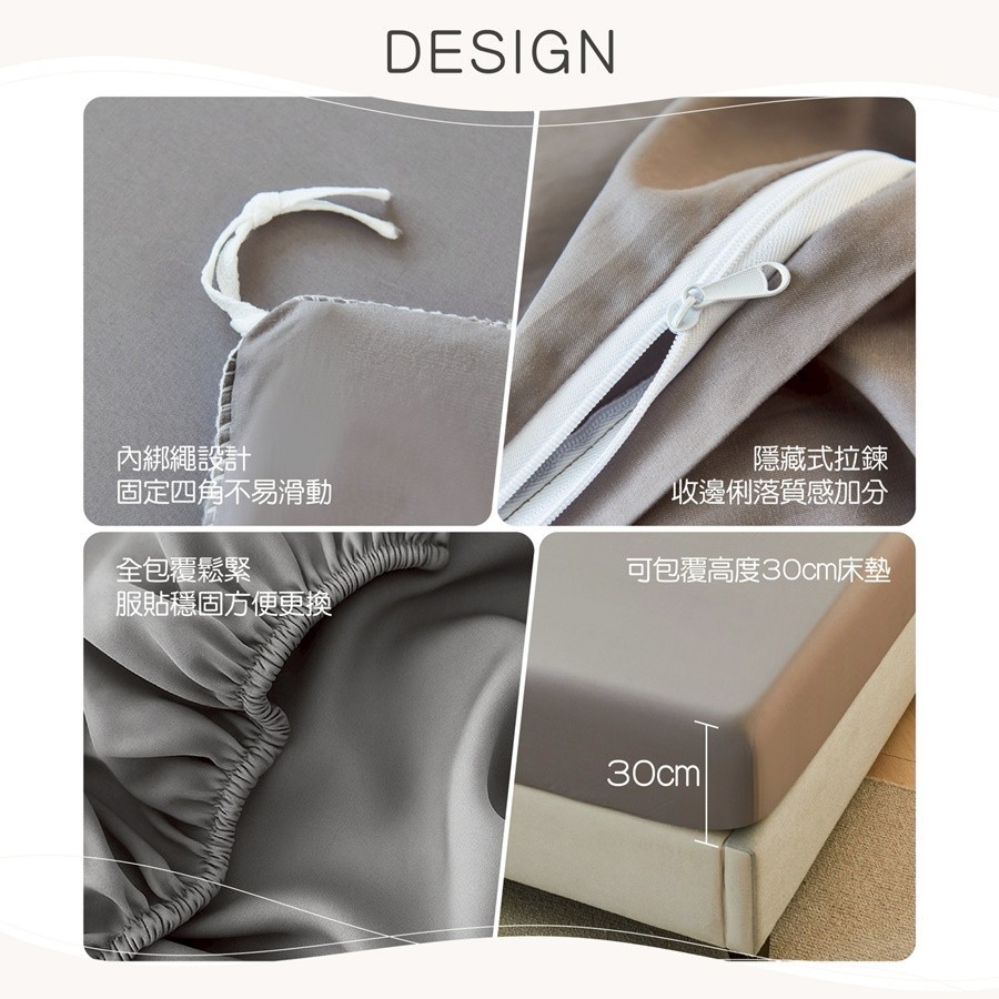 床包 — 28cm全包式鬆緊帶設計,穩固服貼、不滑動。