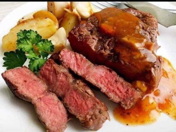肉質Q嫩可口,油花分佈均勻,可切塊香煎後與番茄、洋蔥、月桂葉拌炒,並加入紅酒燉煮至醬汁香濃,肉嫩入味,誘人美味