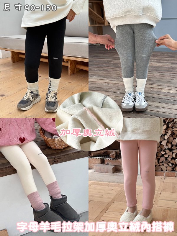 名稱 DAMP041童裝字母羊毛拉架加厚奧立絨內搭褲