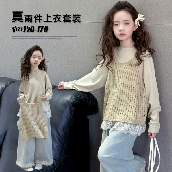 DJU2b439中大女童蕾絲邊套裝