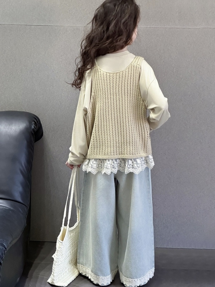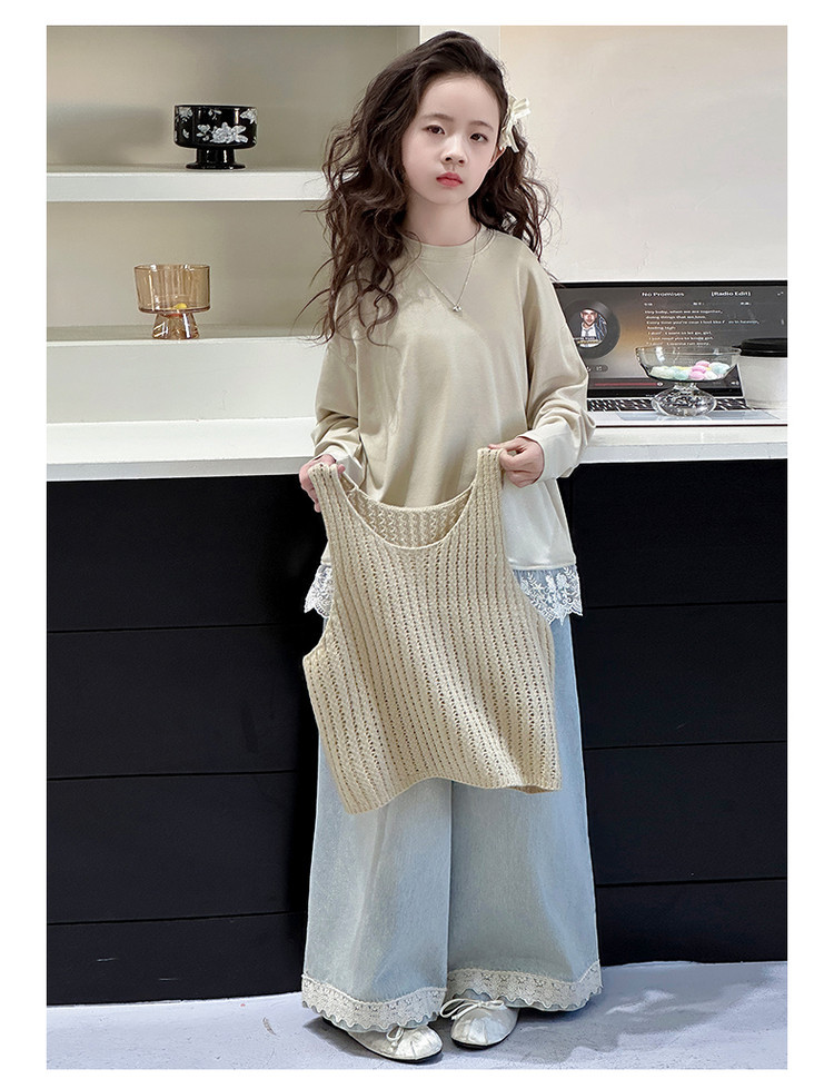 可另外搭配蕾絲邊牛仔寬褲