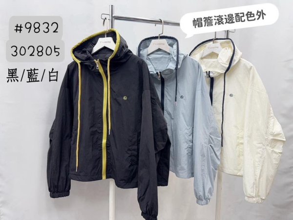 9832 「帽簷滾邊配色外套 」