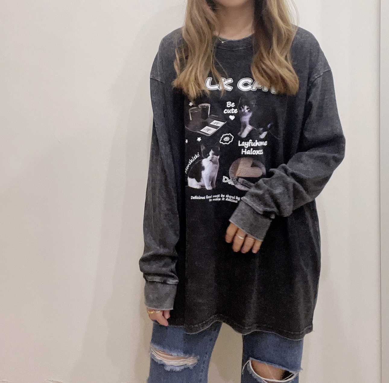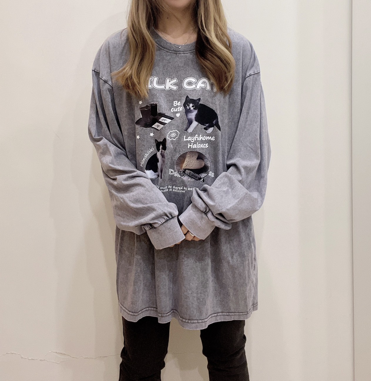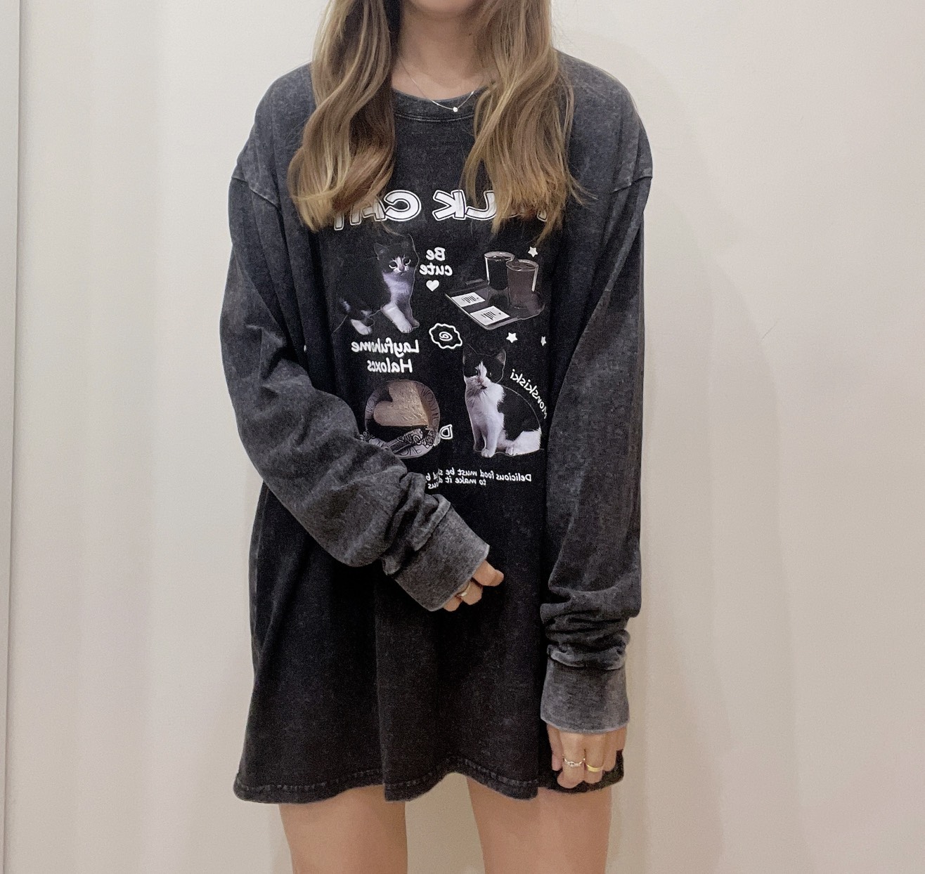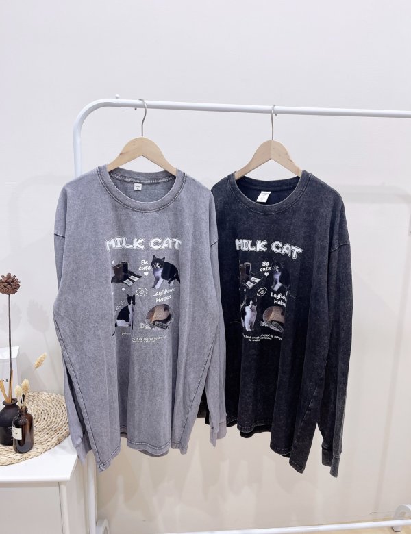WSD26207女裝賓士貓咪舒服水洗棉薄長T