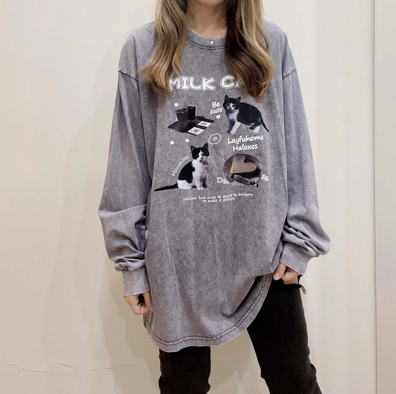 可愛牛奶貓印花