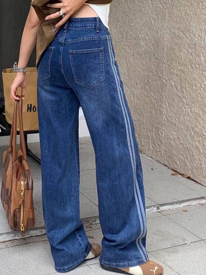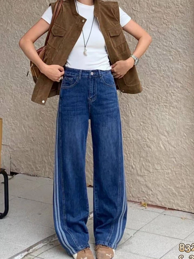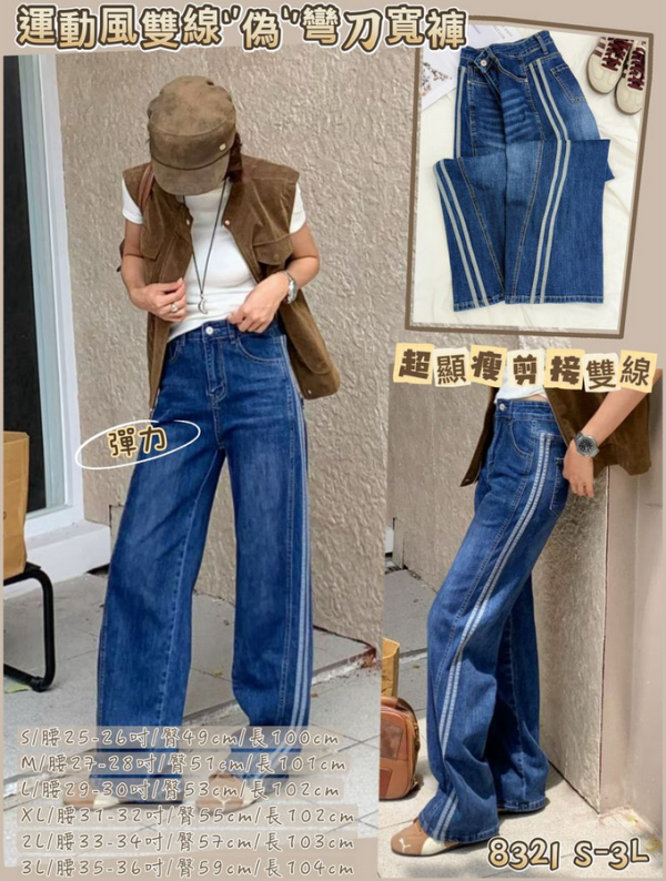 【WCH8321 女裝運動風雙線 偽彎刀彈力寬褲】💙
