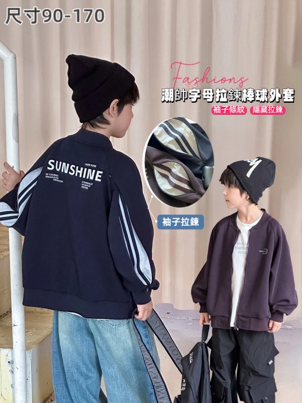 DMG25147童裝潮帥字母拉鍊棒球外套