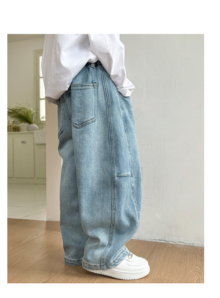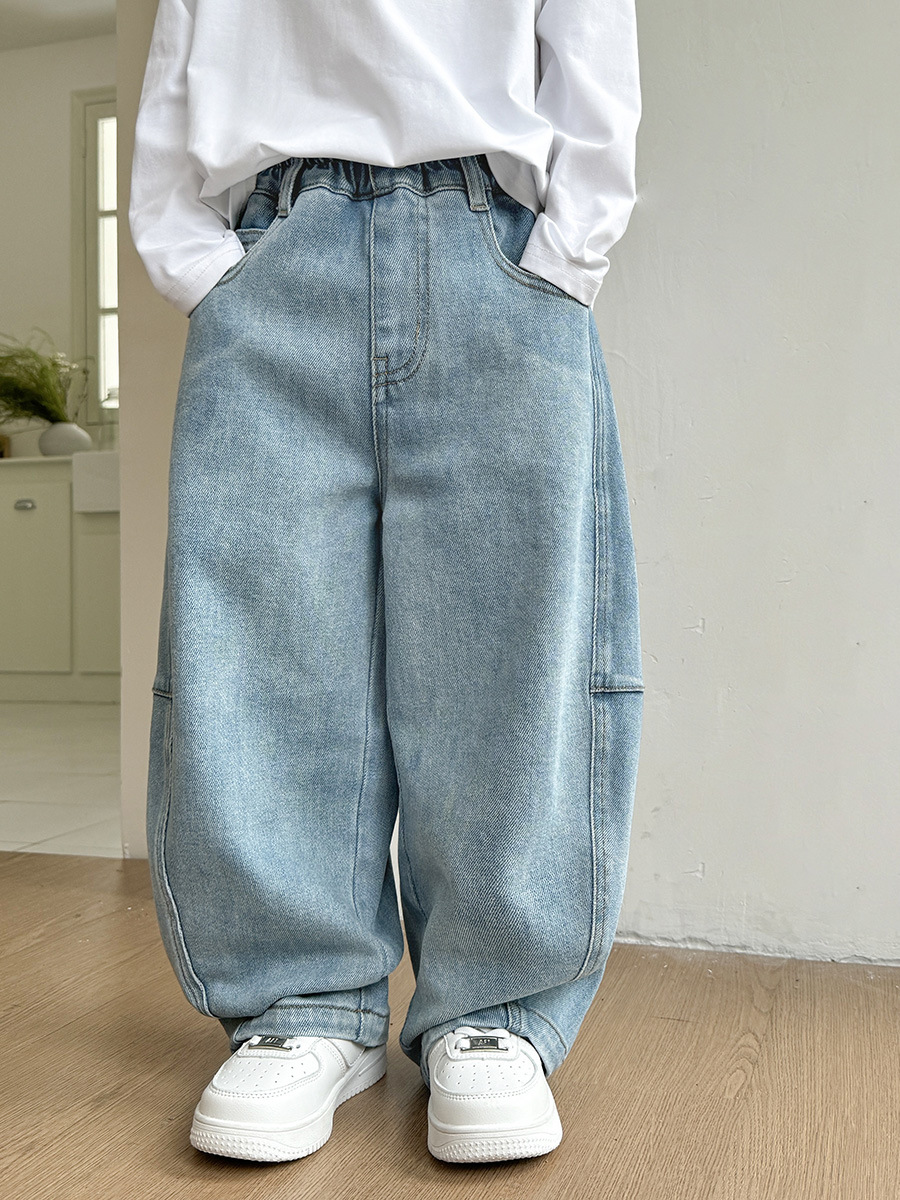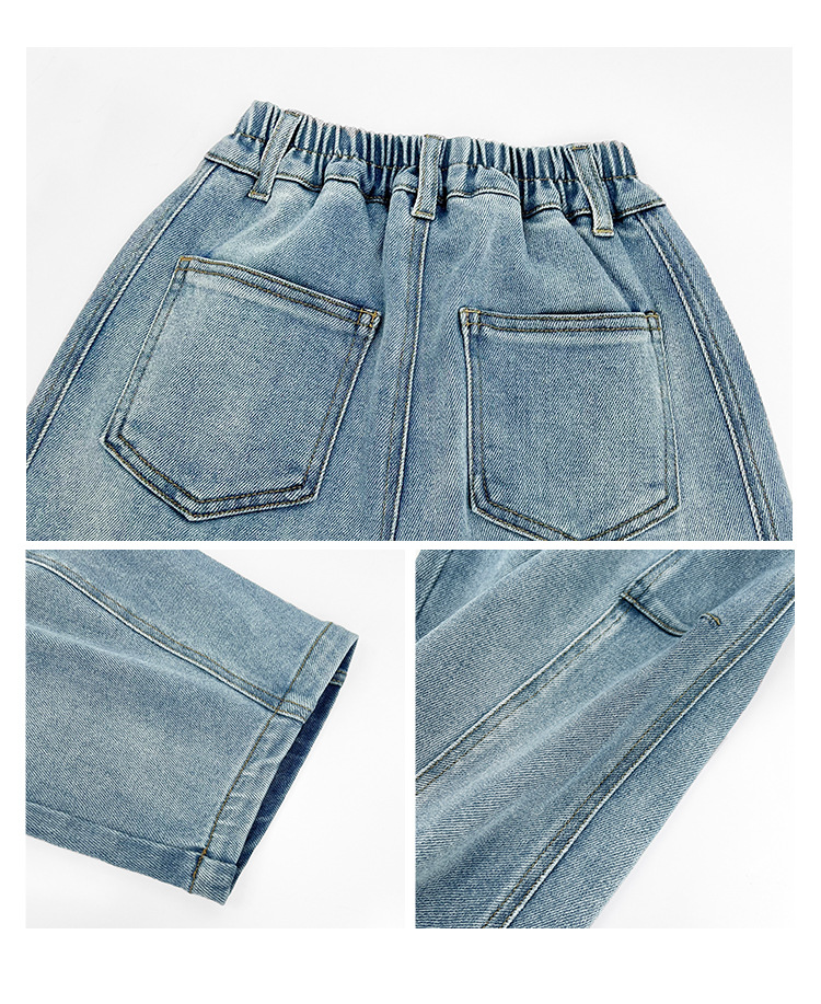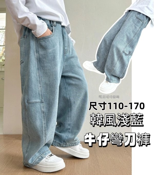 DHM2516中大童韓風淺藍牛仔彎刀褲