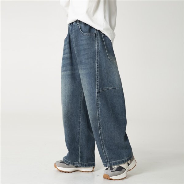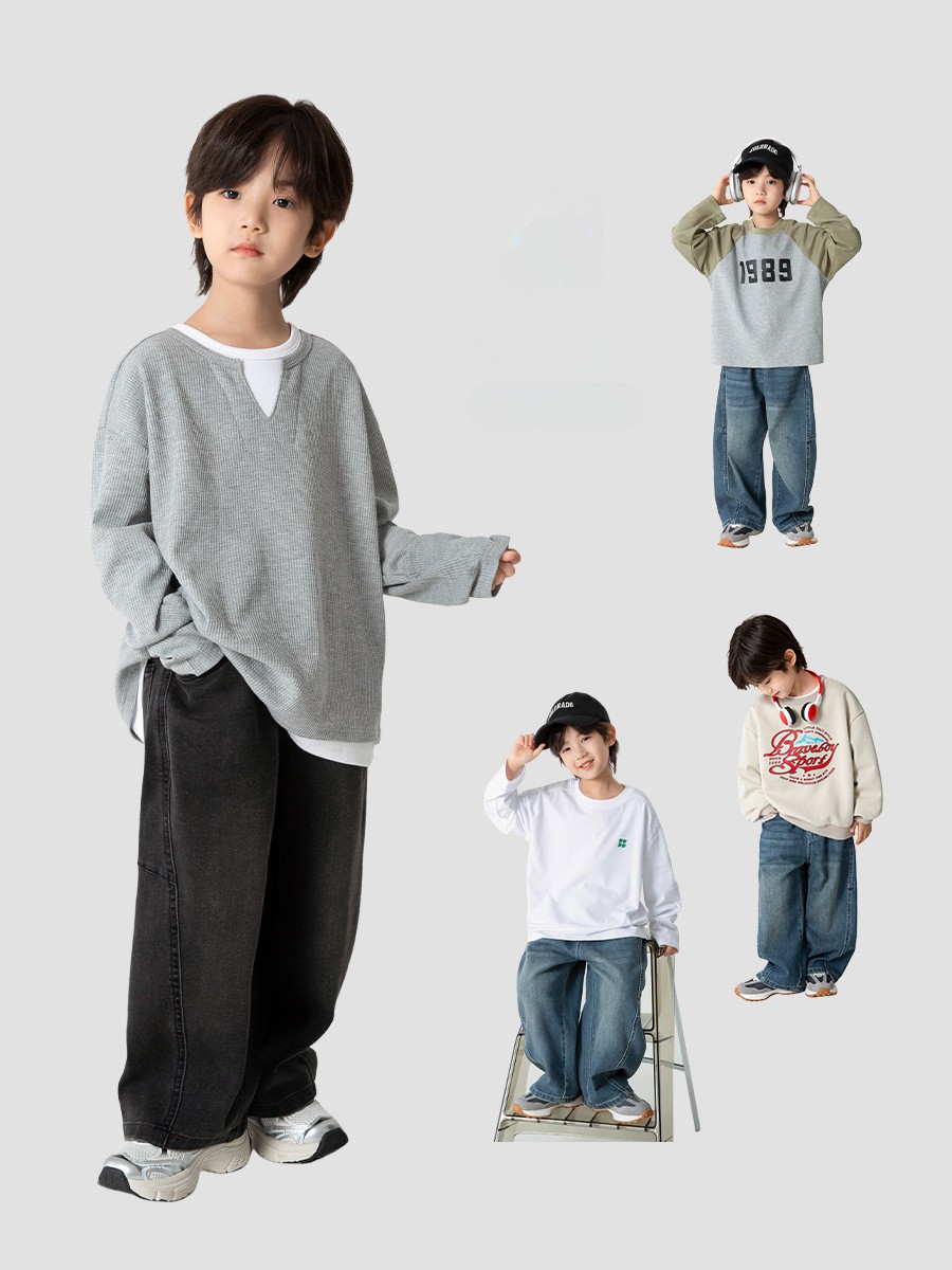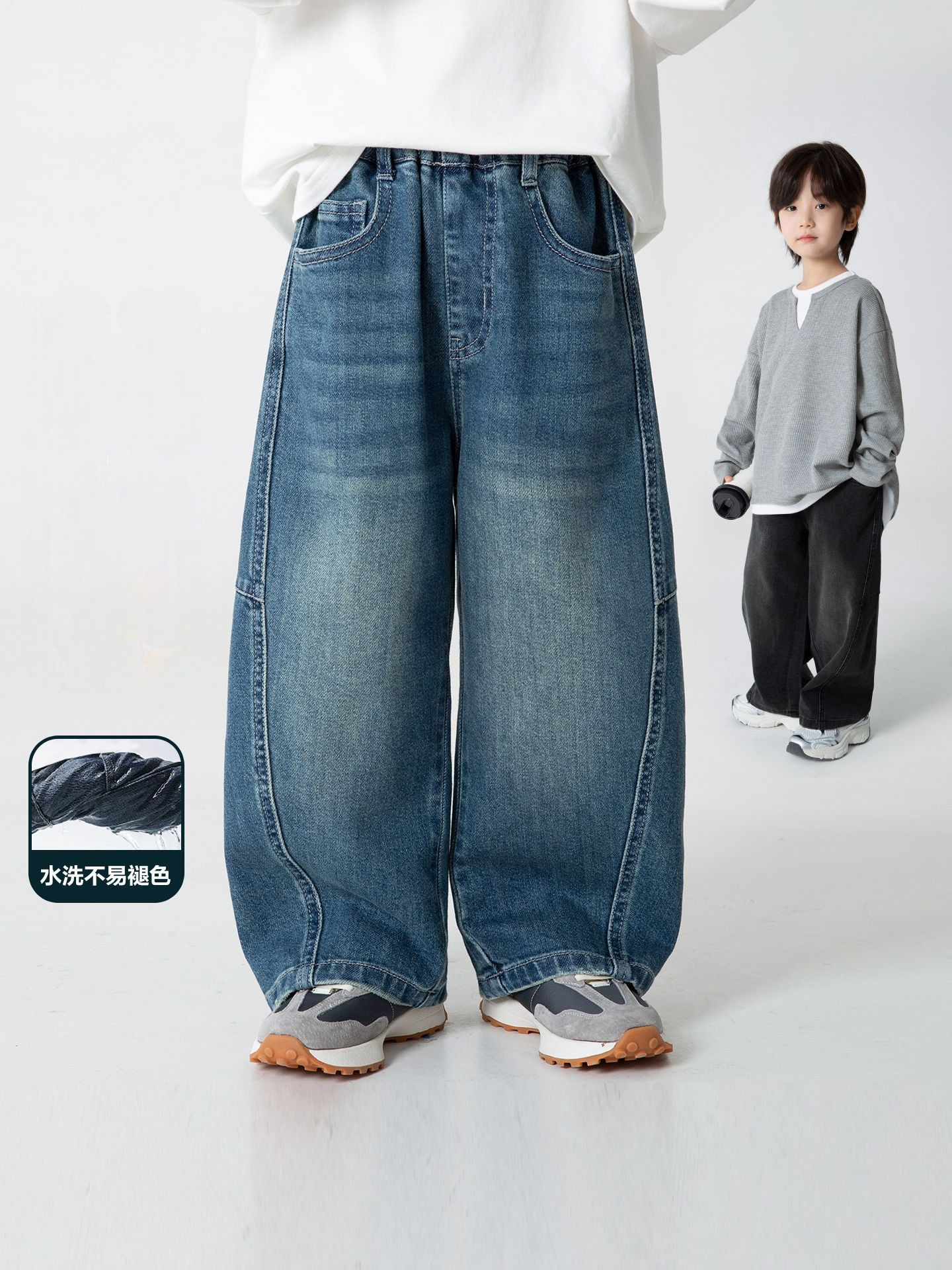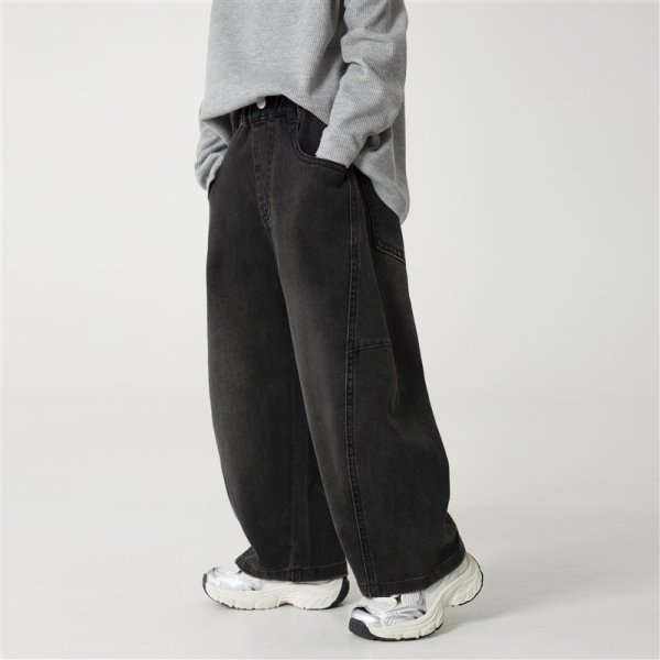 DHM2508中大童寬鬆彎刀擴腿牛仔褲