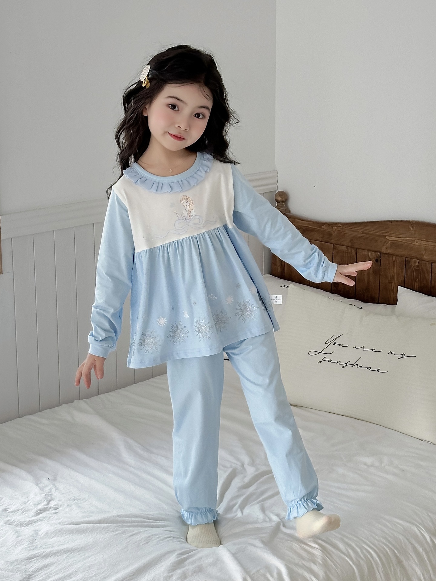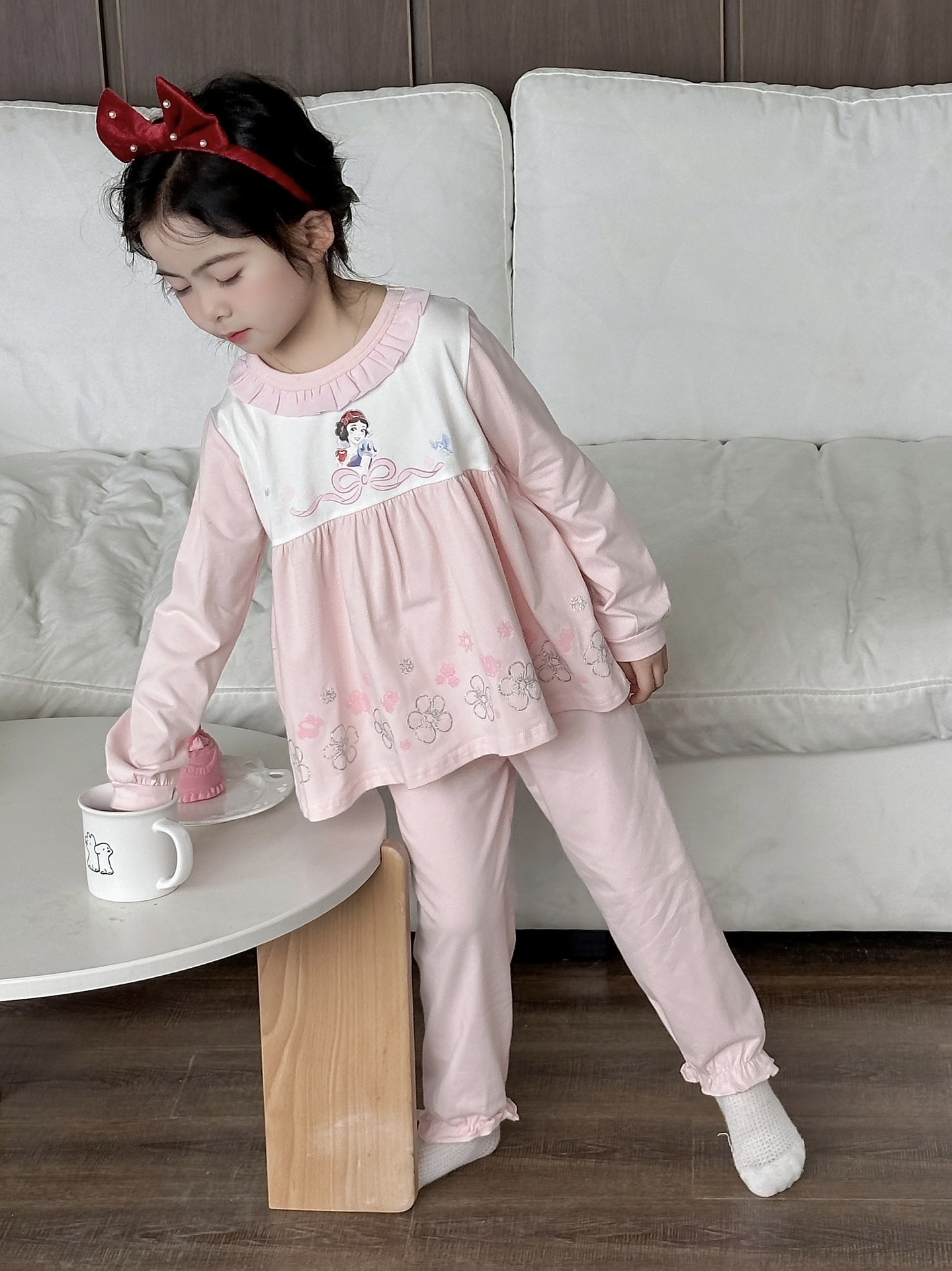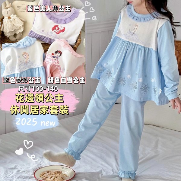 名稱 DL816童裝花邊領公主萊卡棉居家休閒套裝
