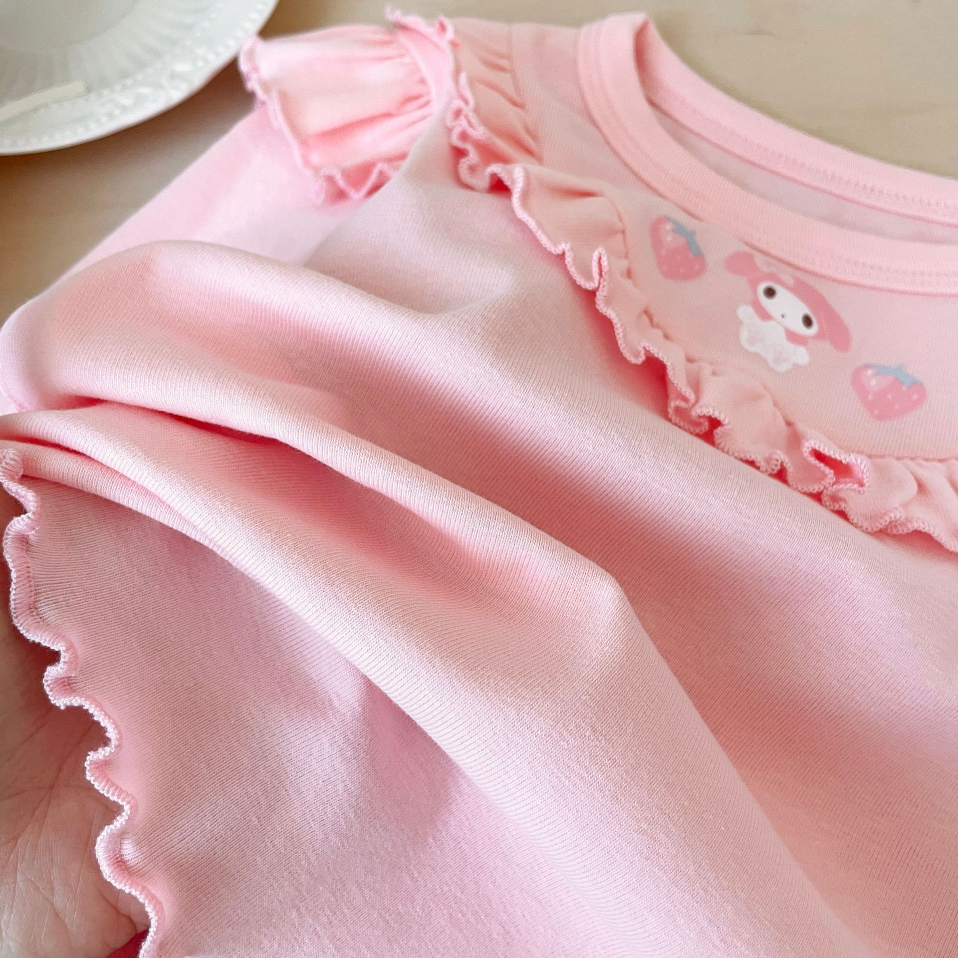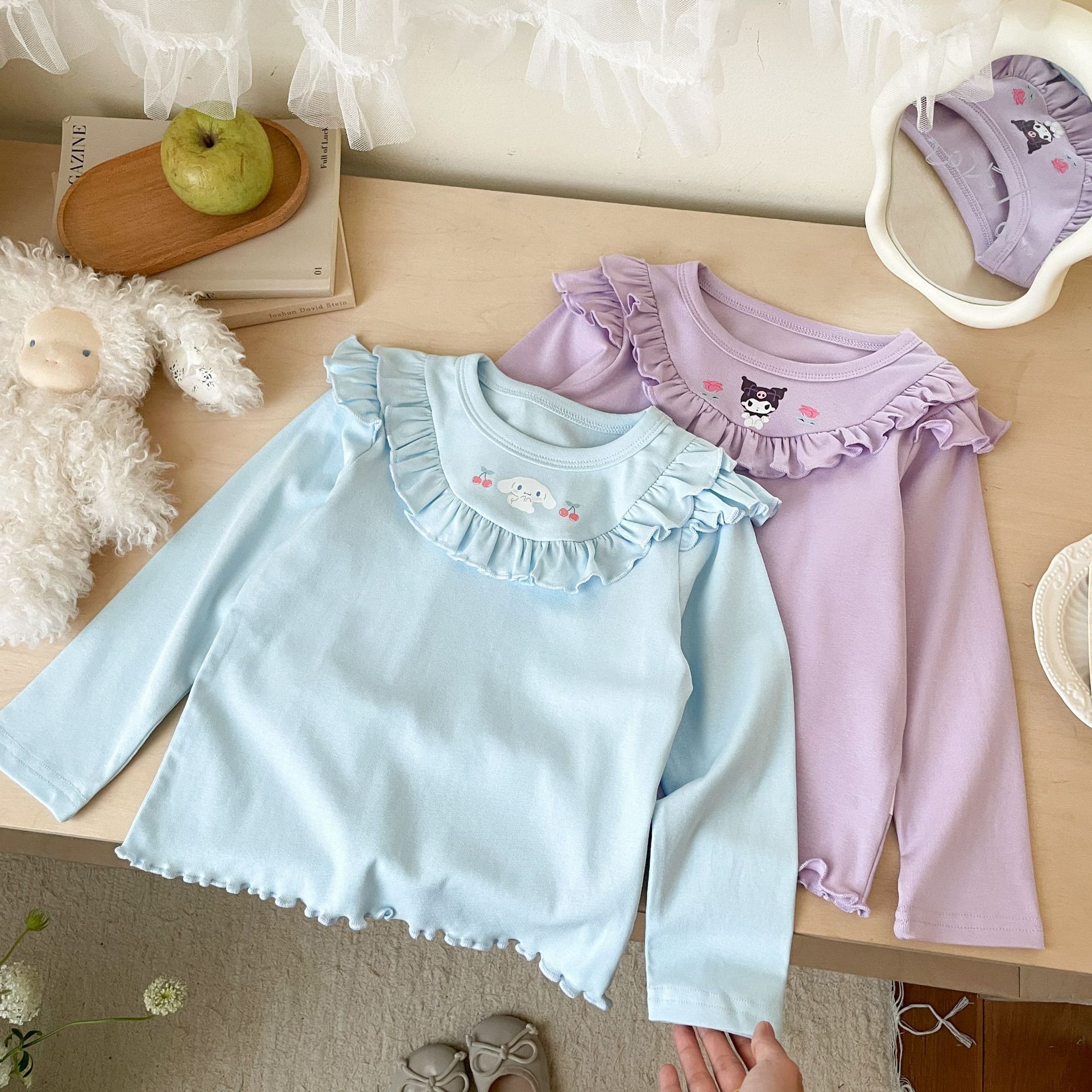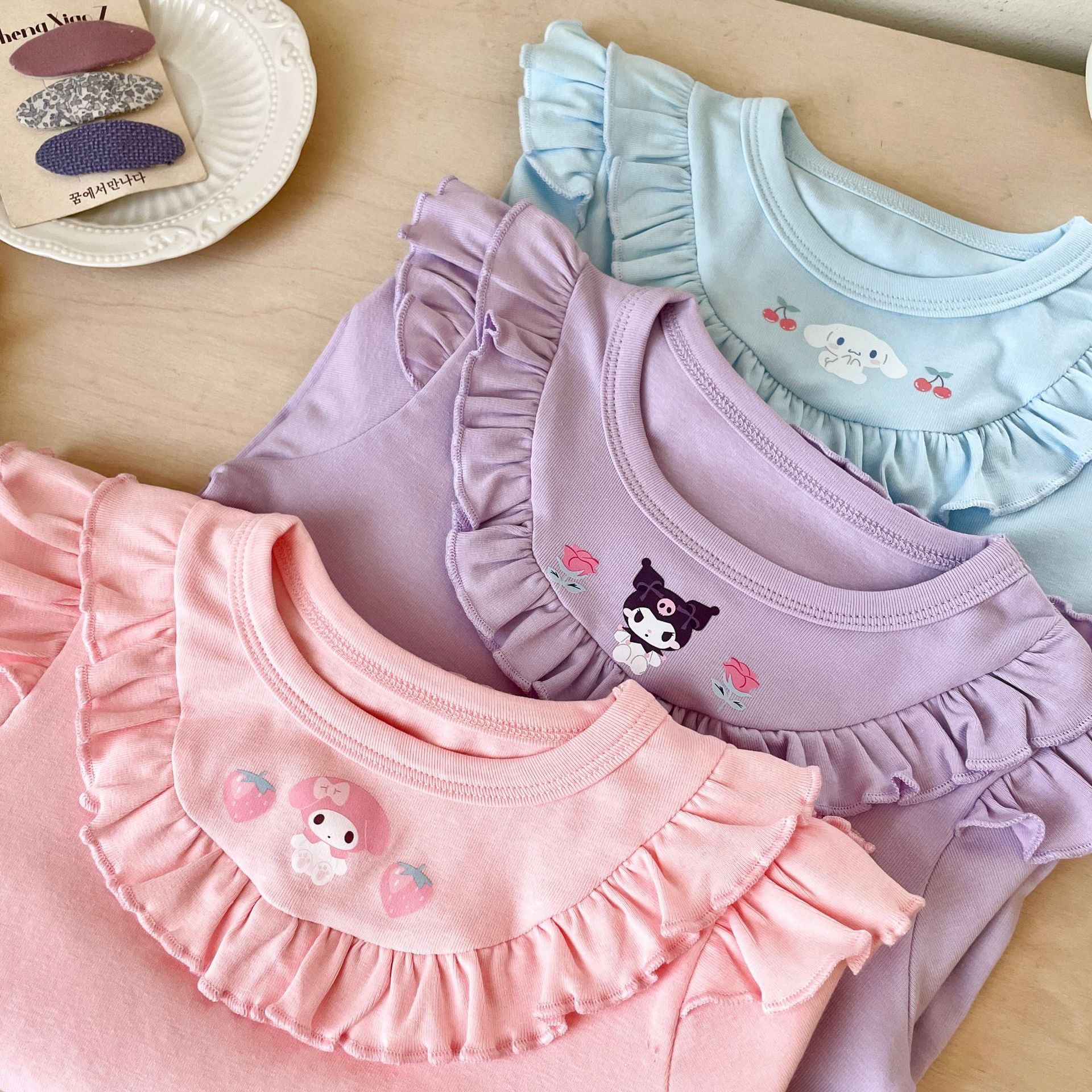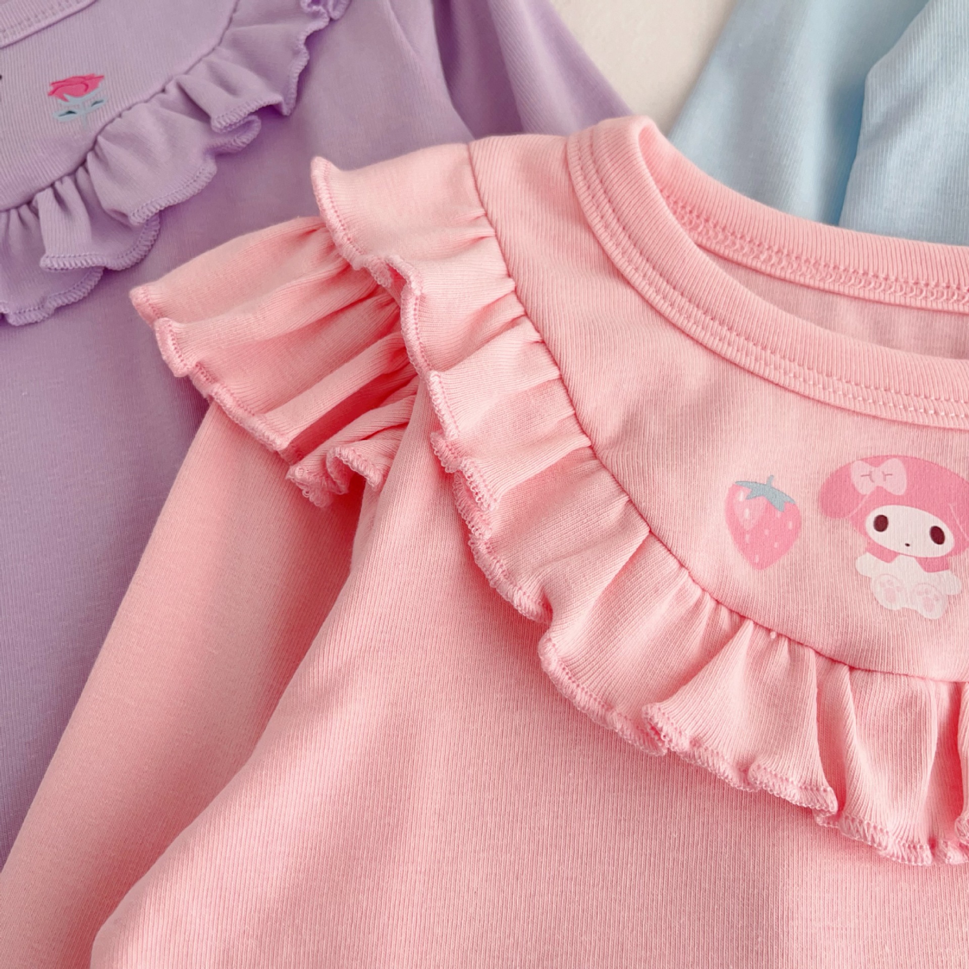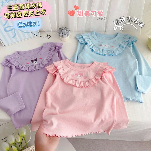 名稱 DL825童裝三麗鷗螺紋棉荷葉邊長袖上衣