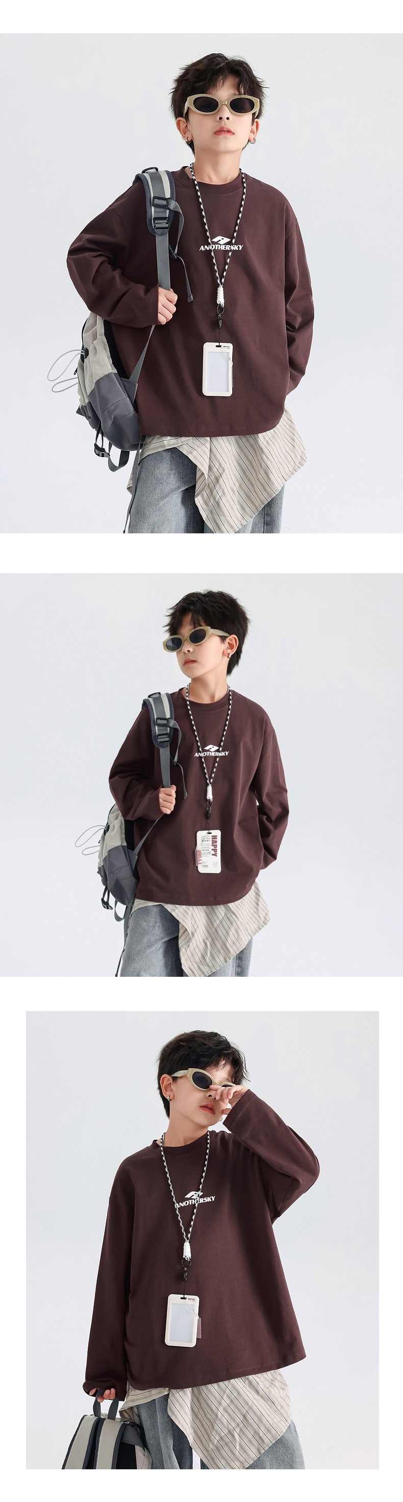 DSZ5805中大童字母簡約風百搭圓領上衣