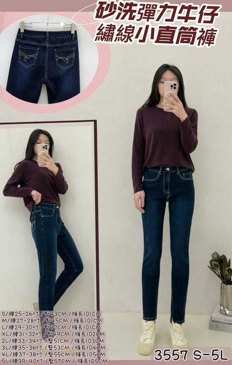 WCH3557 S-5L砂洗彈力牛仔小直筒】
