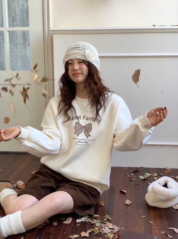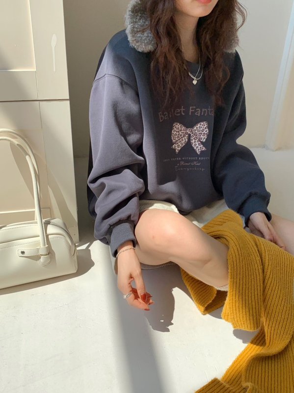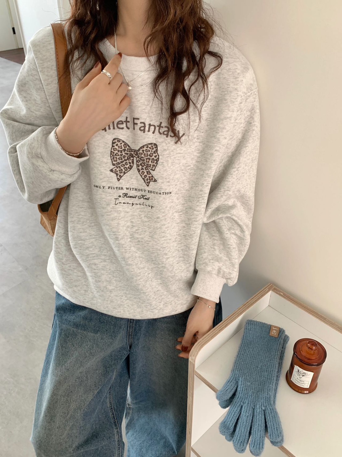 WSD101808女裝牛奶絲豹紋蝴蝶結上衣