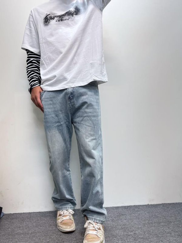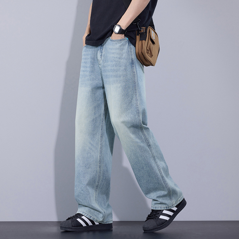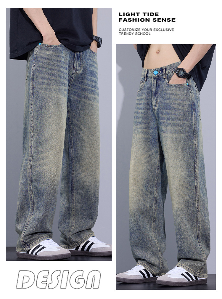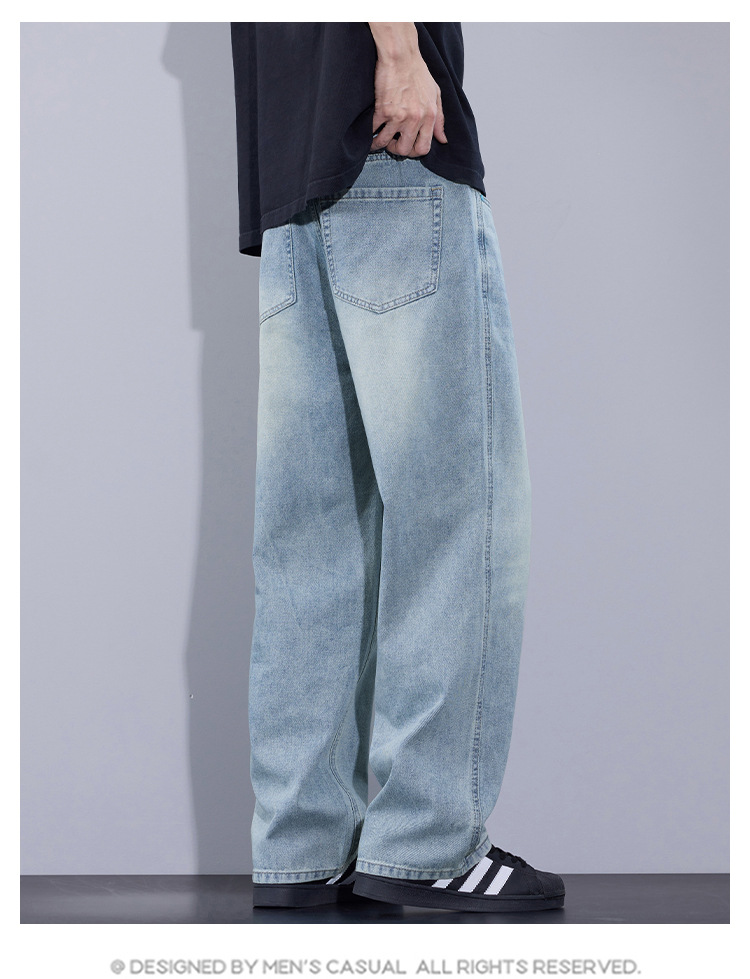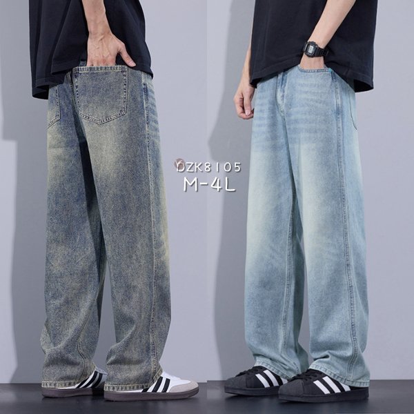DZK8105男裝厚磅貓抓紋直筒牛仔褲