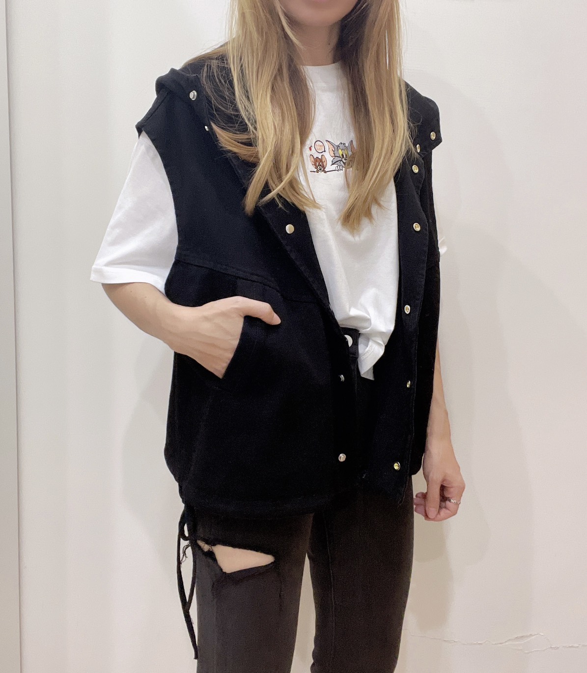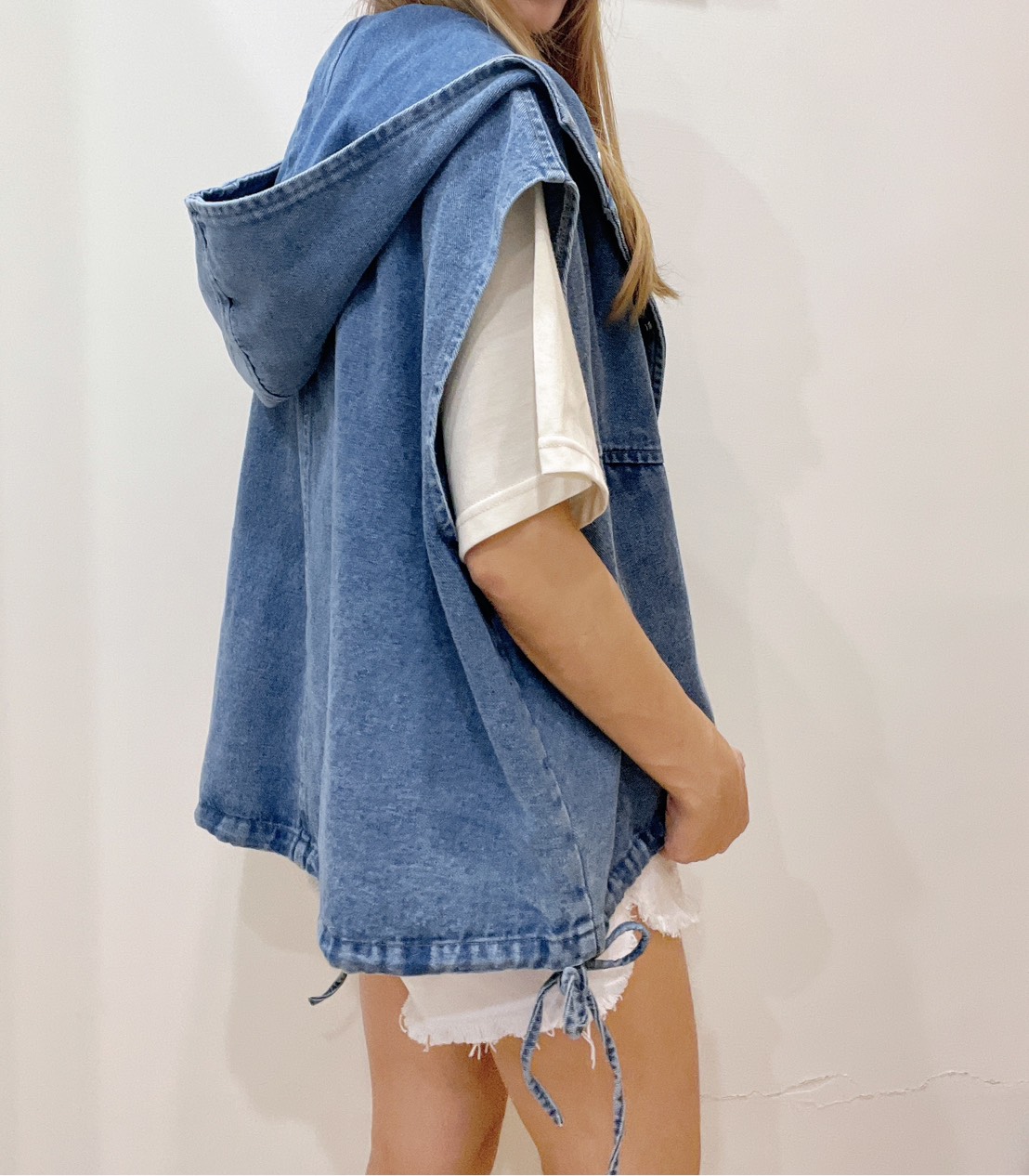 棉花糖女孩也能駕馭的連帽牛仔背心