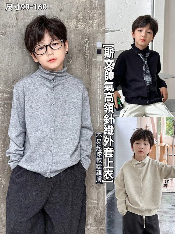 DMG25191童裝斯文帥氣高領針織毛衣外套上衣