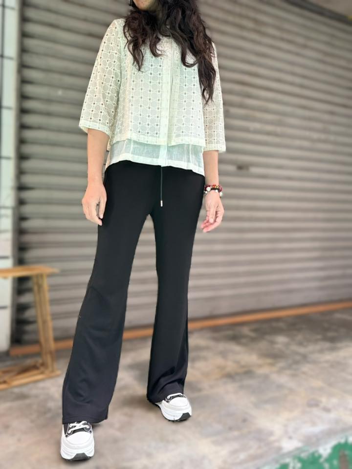 【8061 S-3L 懶懶系學霸 空氣棉寬喇叭長褲】