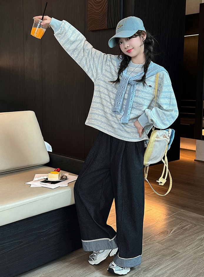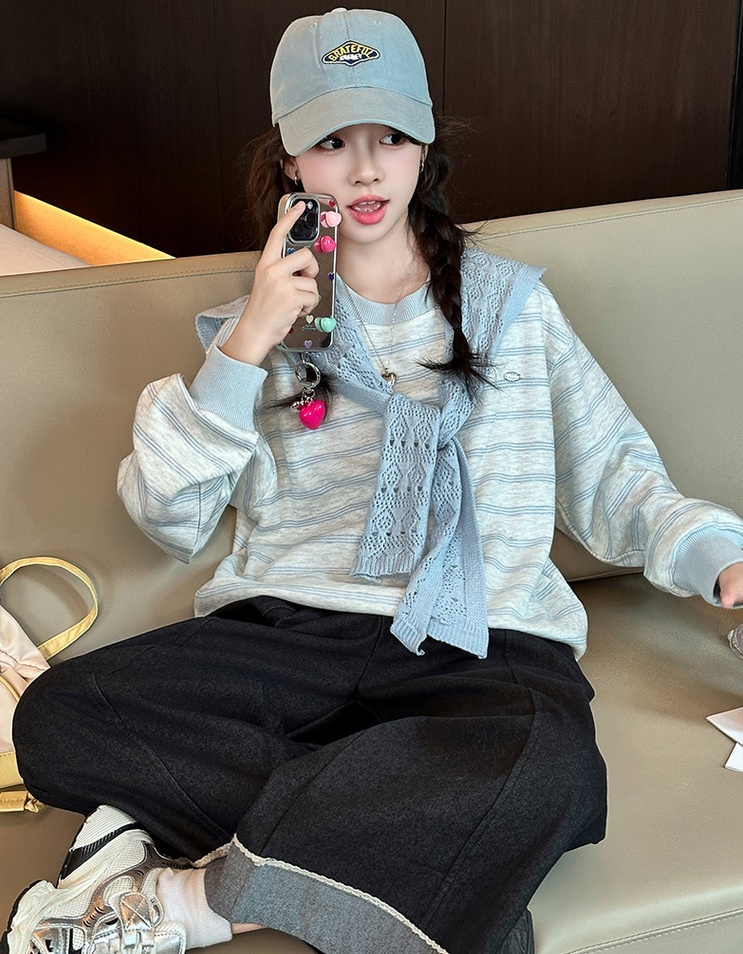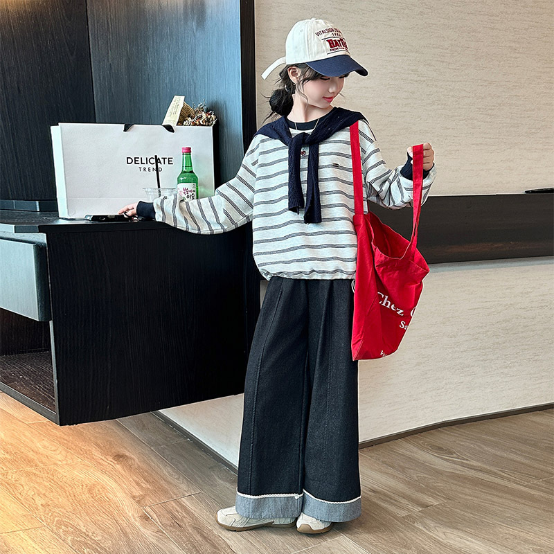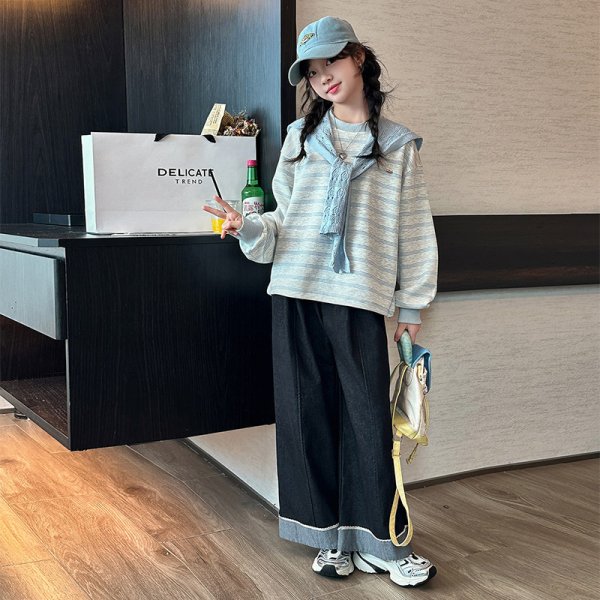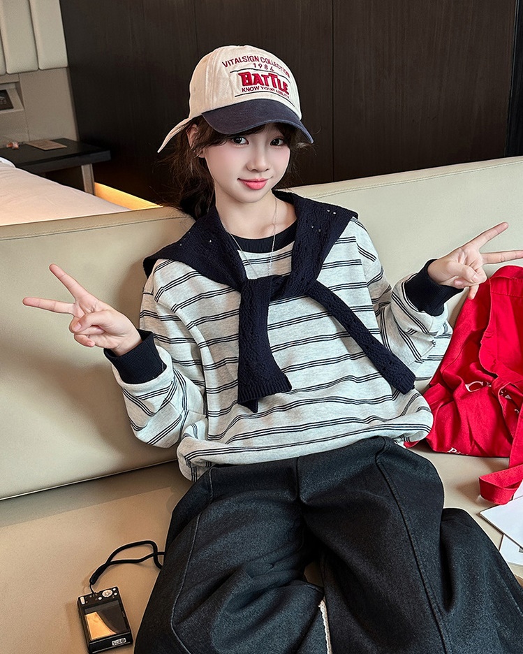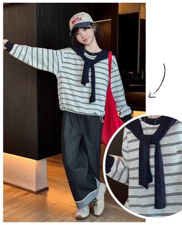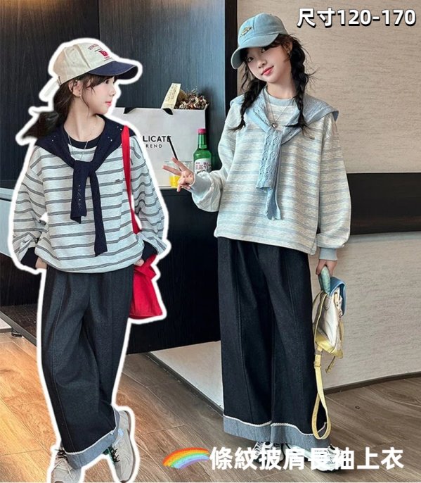 DJU1253中大女童條紋披肩長袖上衣
