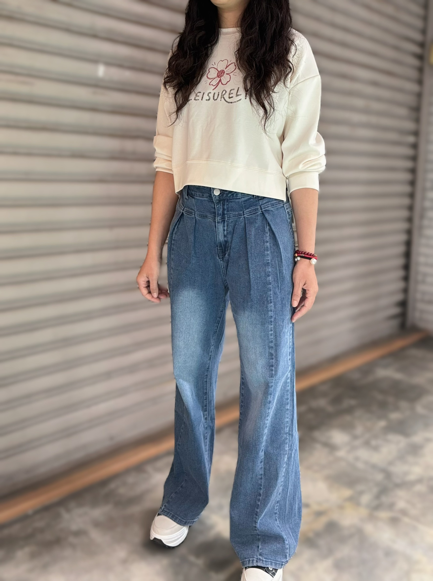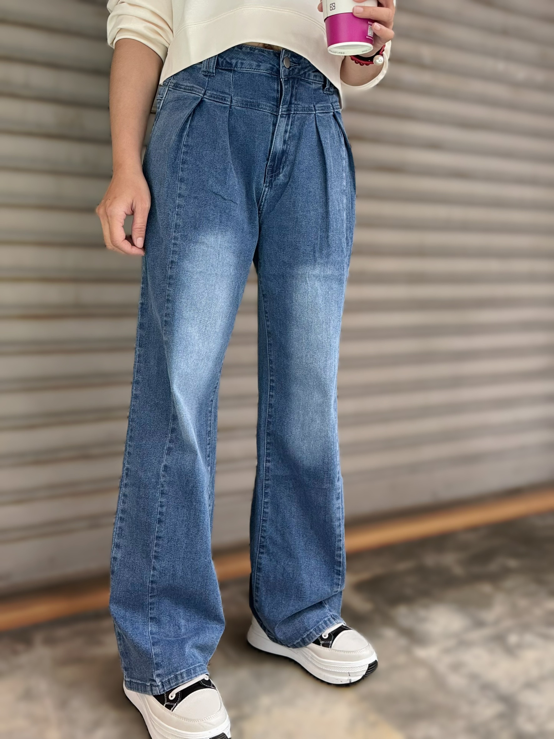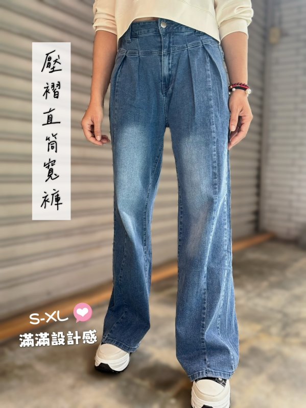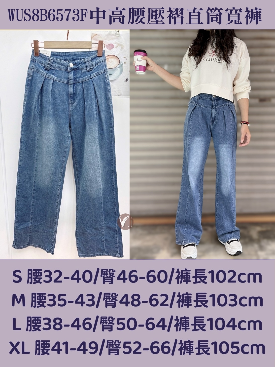 WUS8B6573F女裝滿滿設計感壓摺直筒寬褲