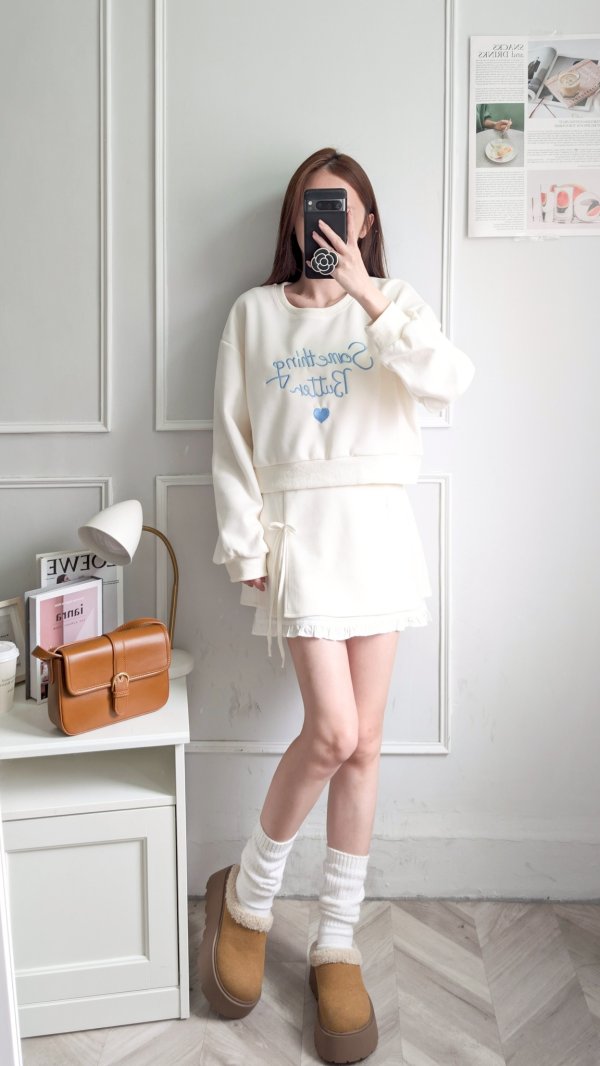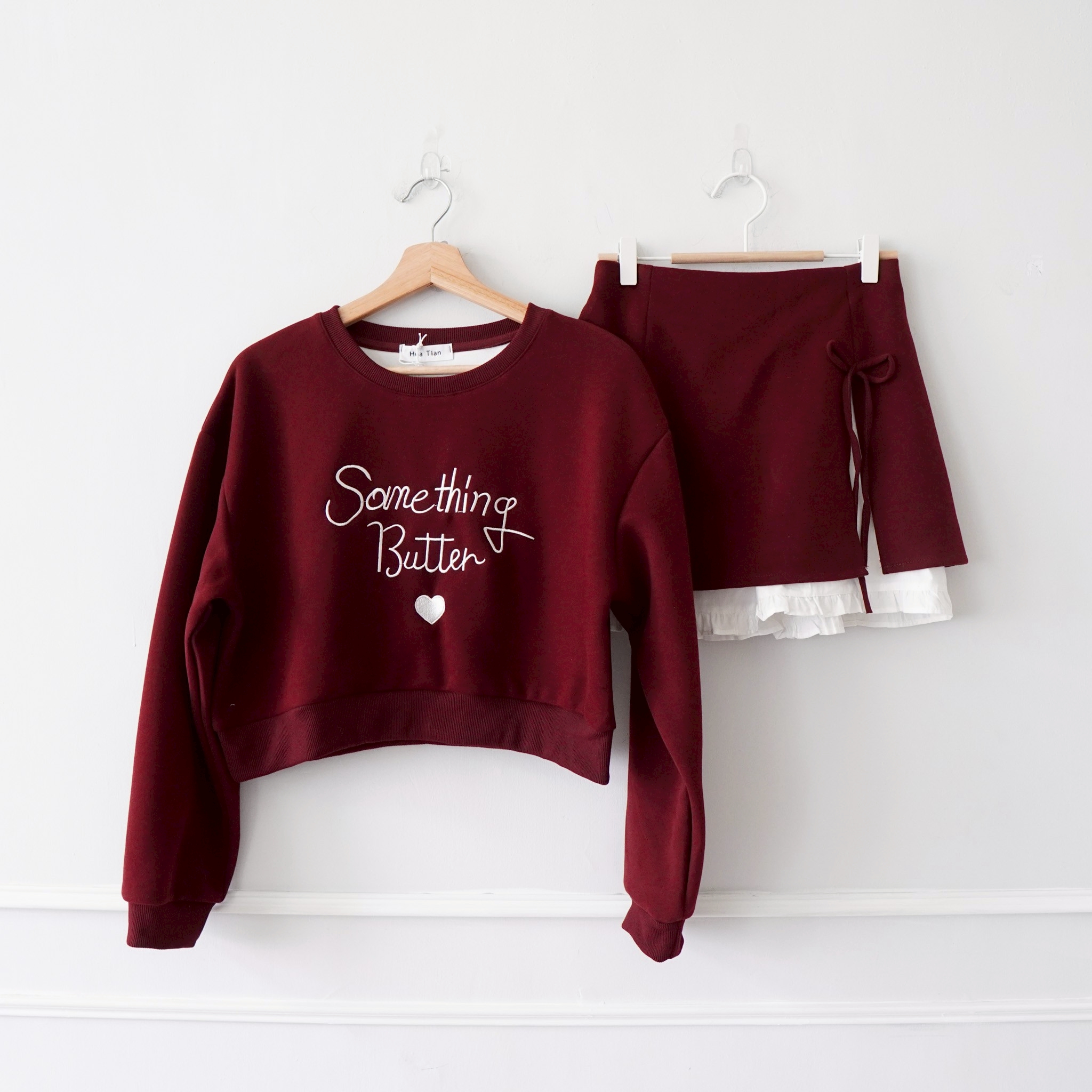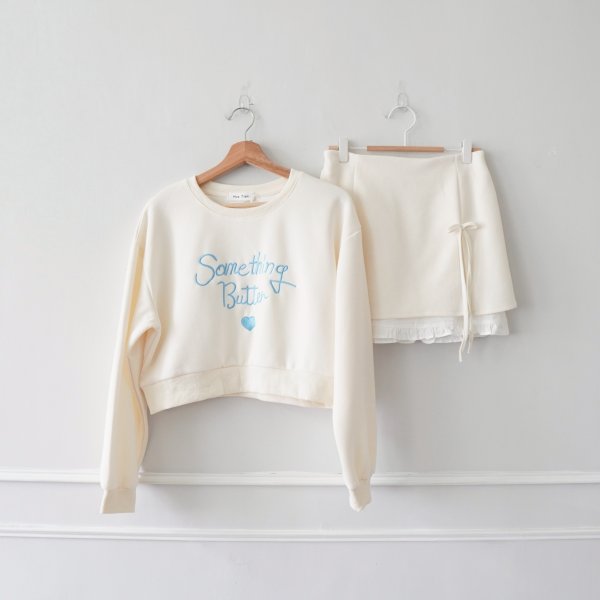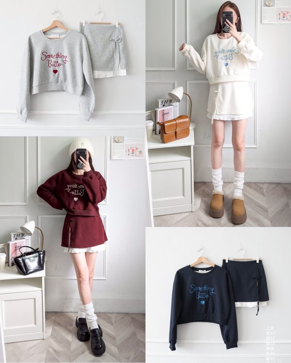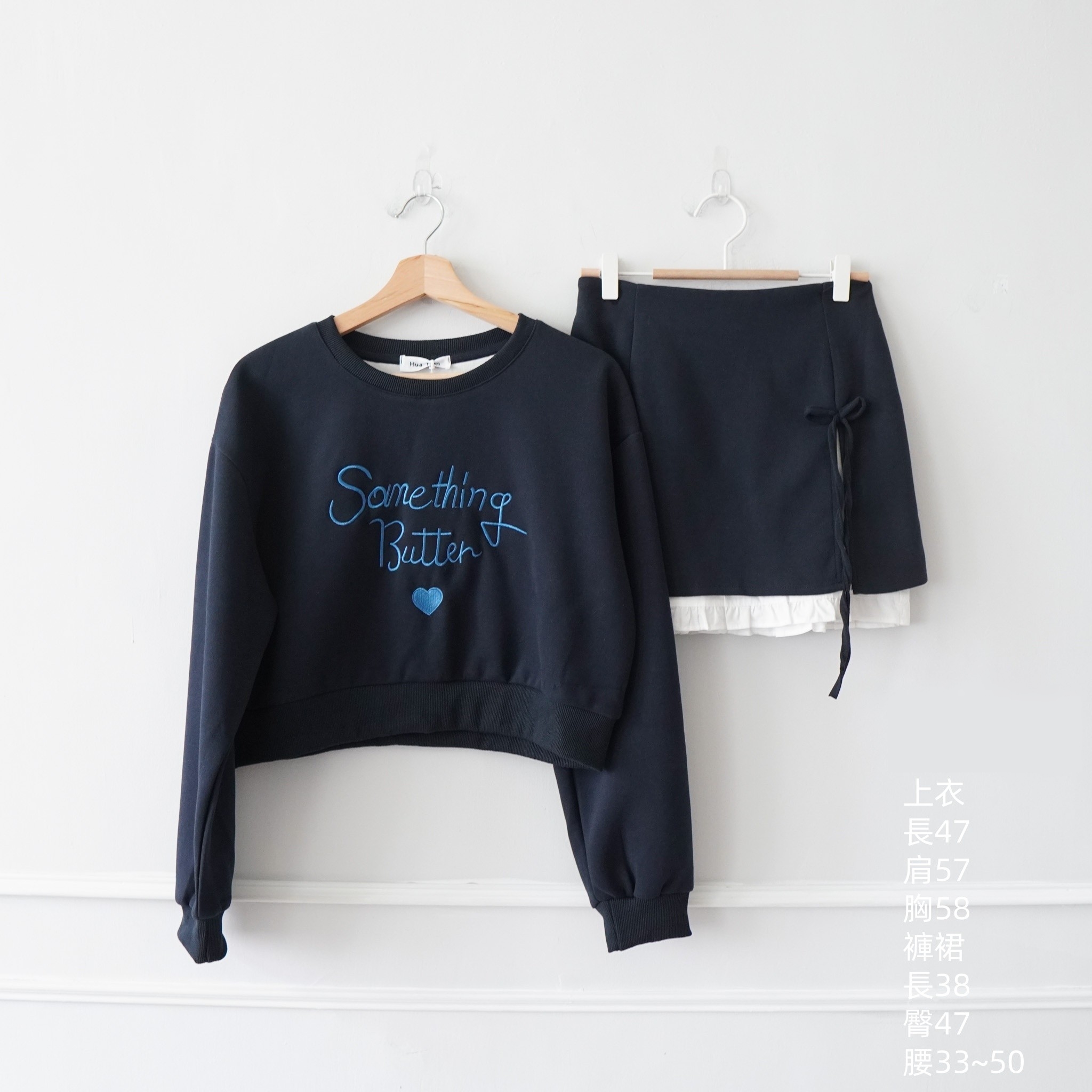 WAP9985F電繡小愛心字母短版上衣+假兩件褲裙
