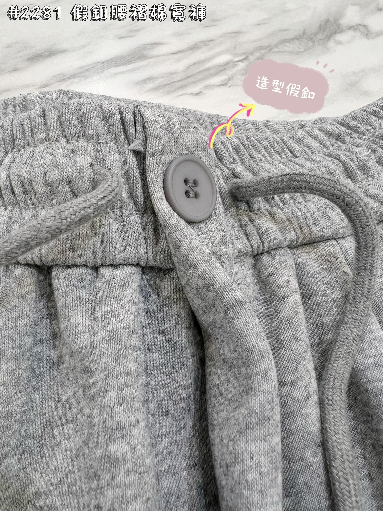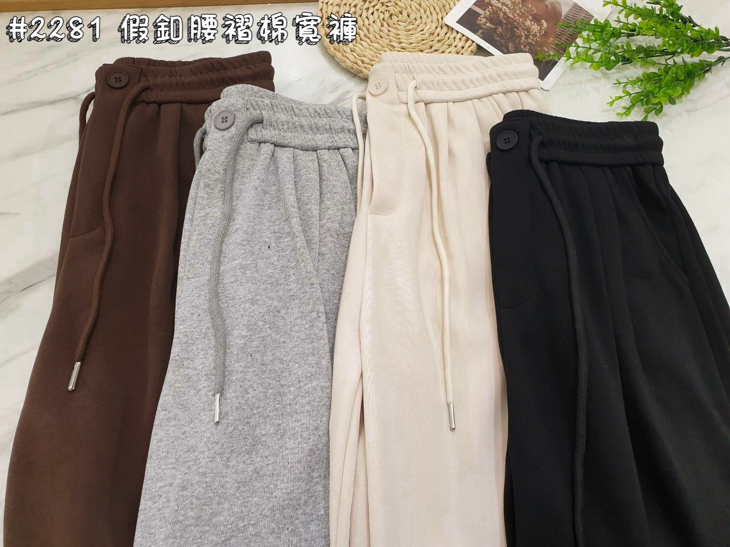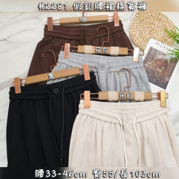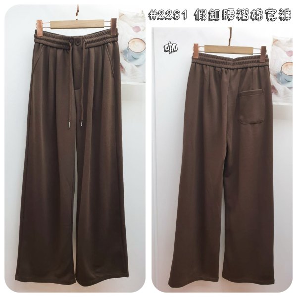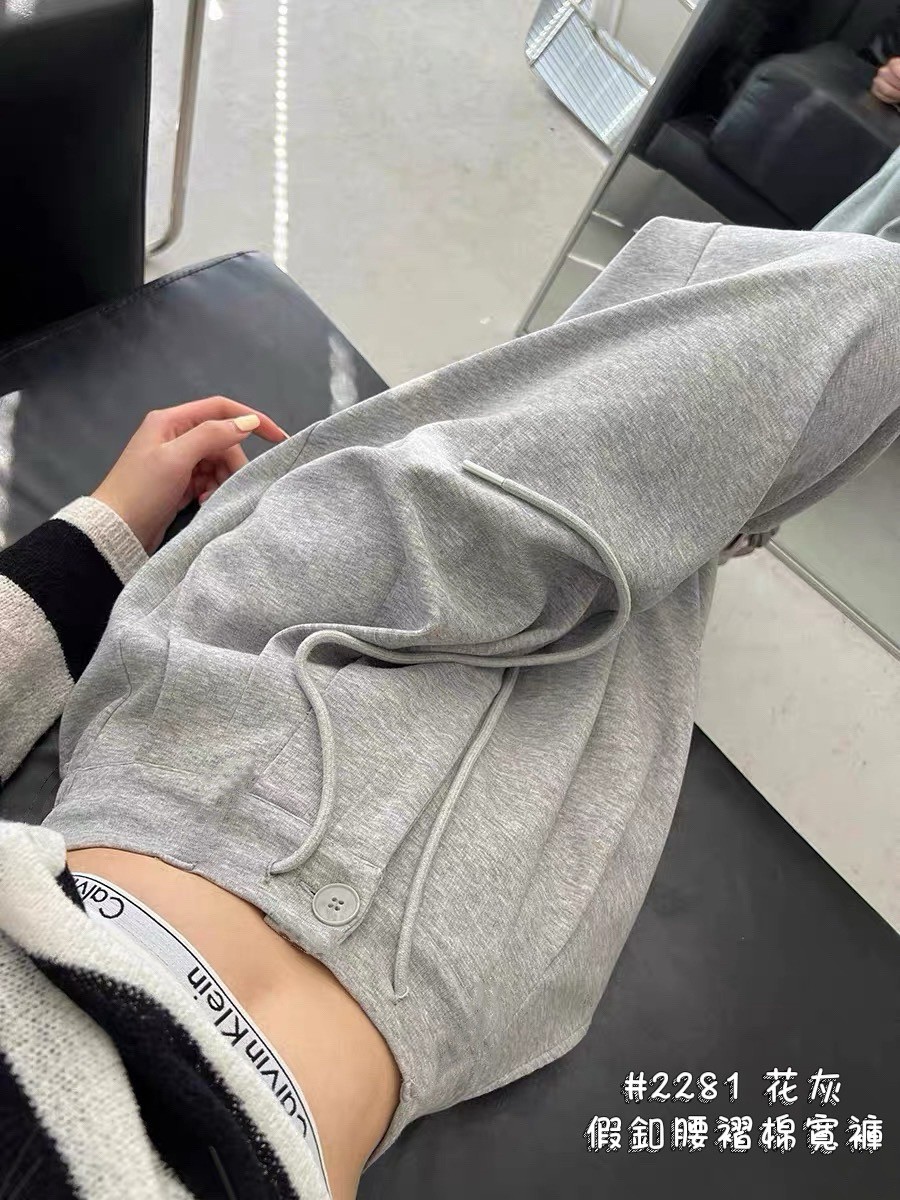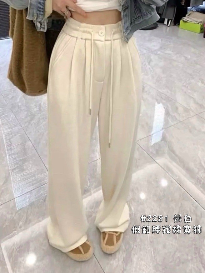 WGW2281女裝假釦腰摺棉寬褲