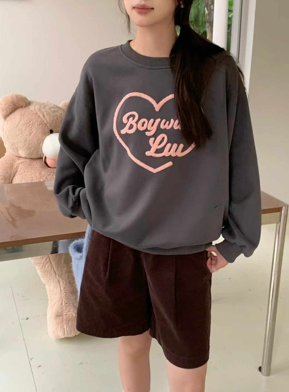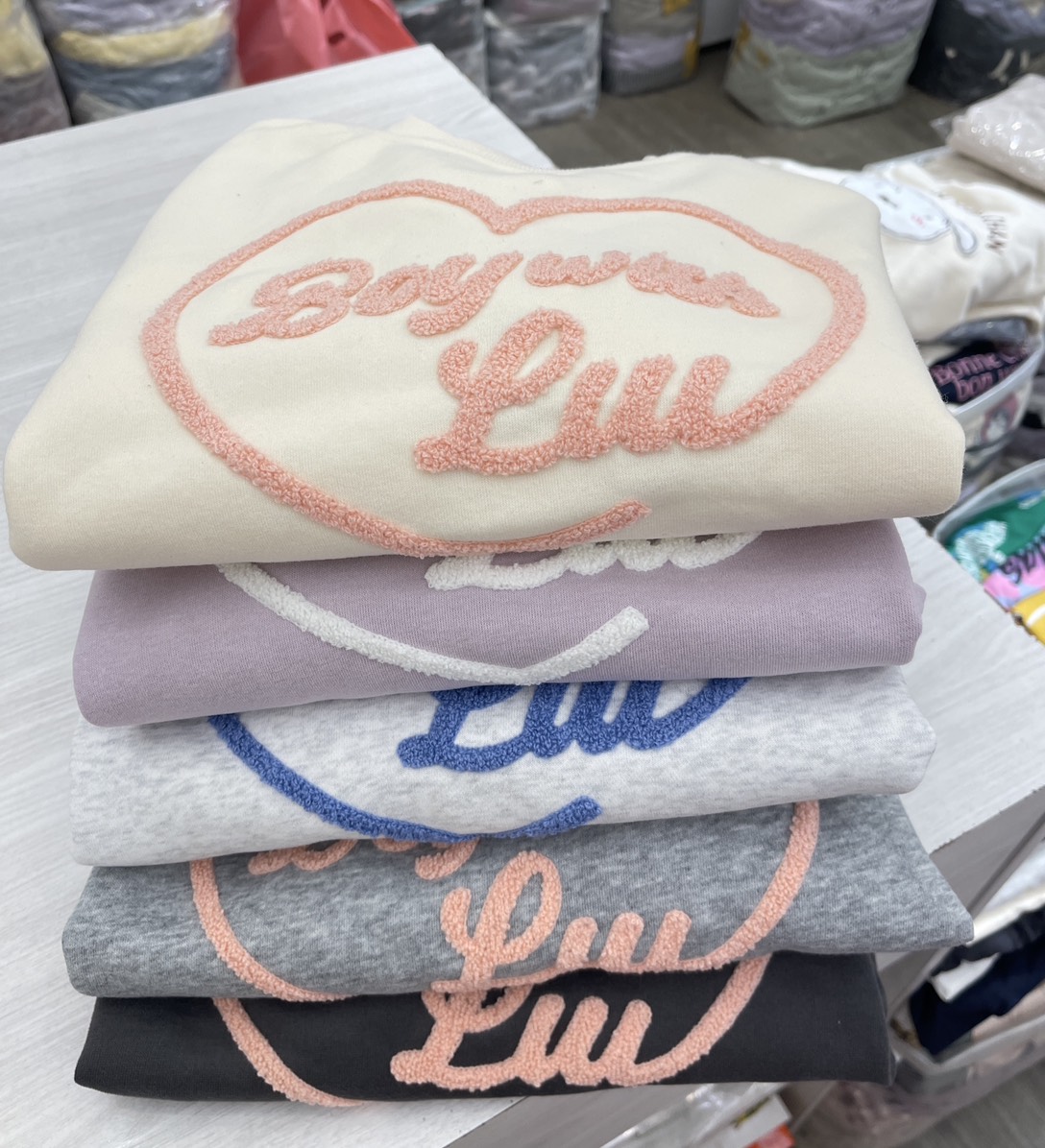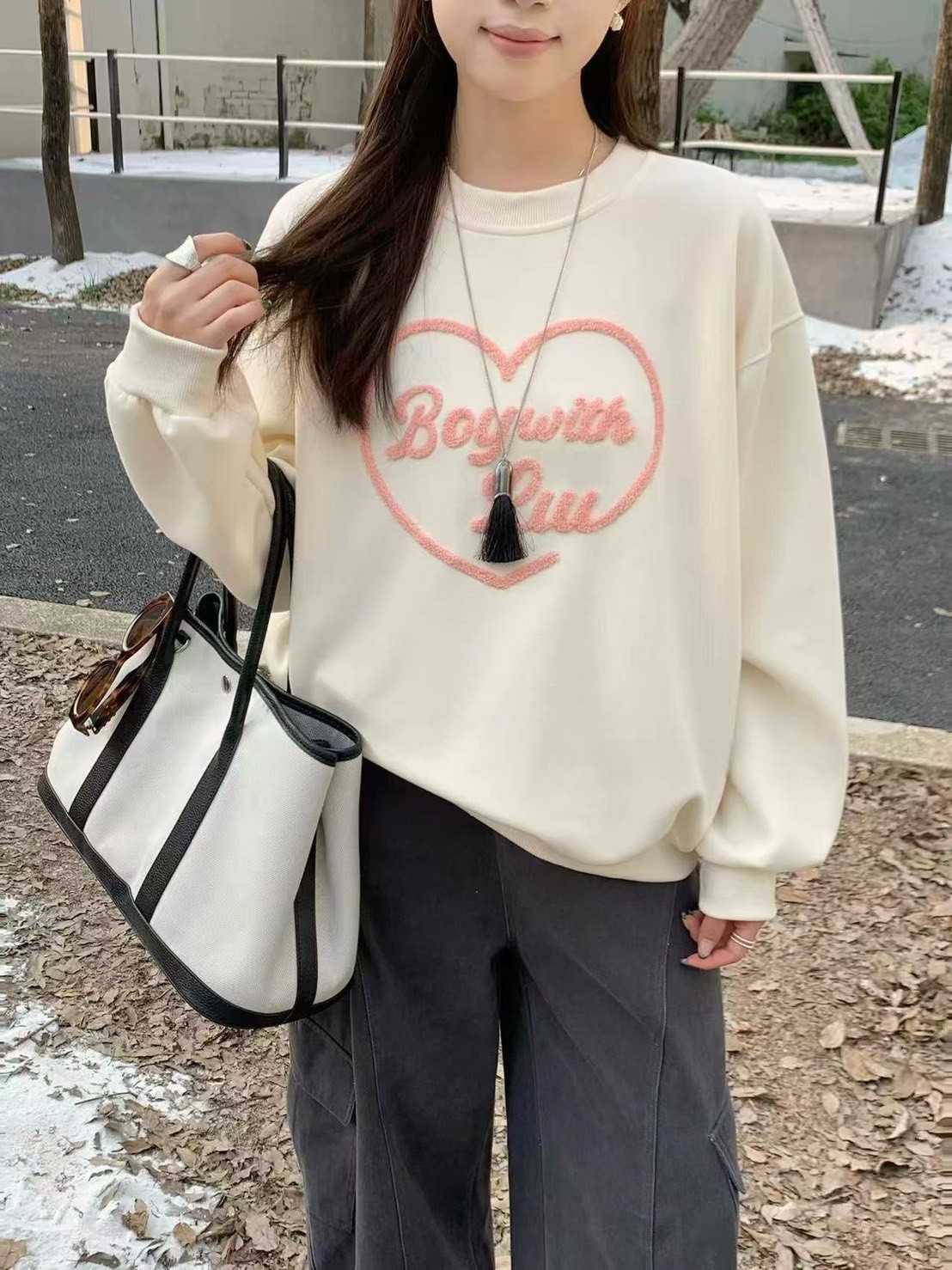 WSD11308女裝牛奶絲立體毛毛繡字母大愛心