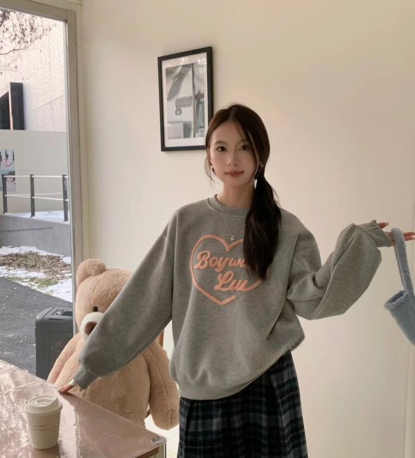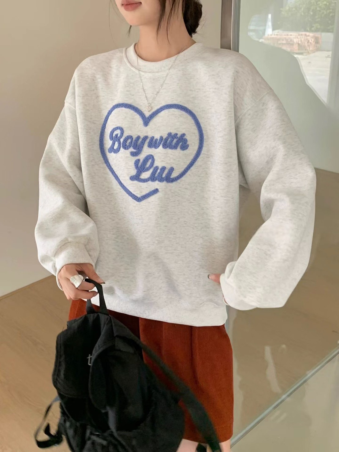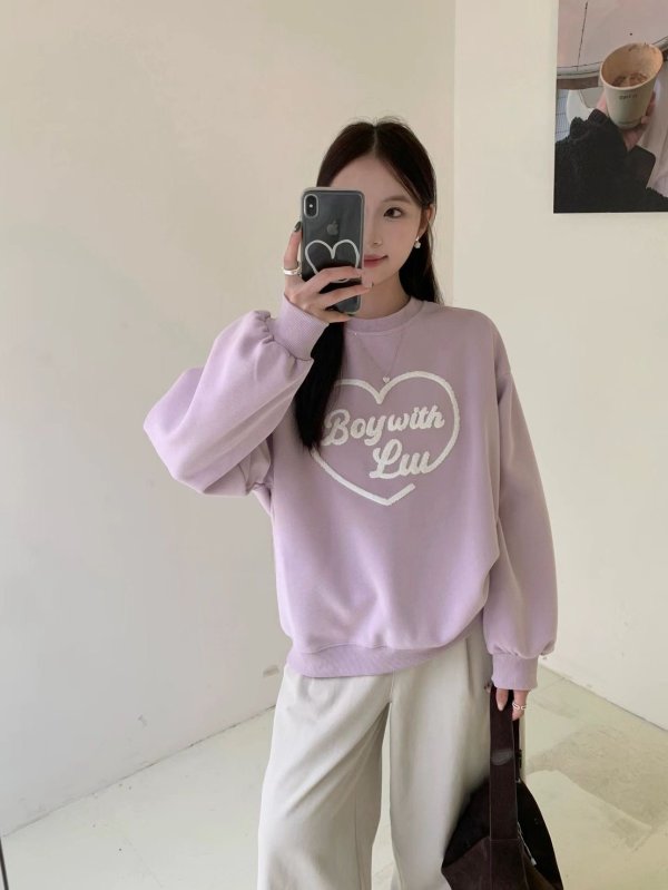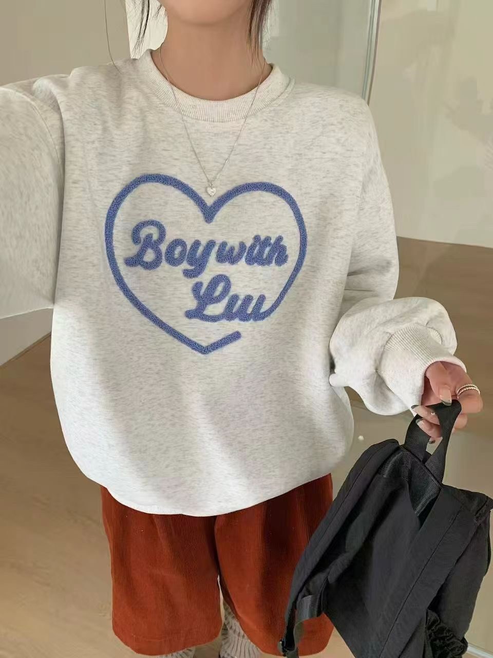 WSD11308女裝牛奶絲立體毛毛繡字母大愛心