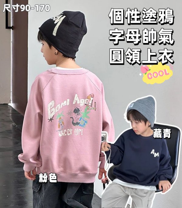 DMG25159童裝潮酷個性塗鴉字母上衣