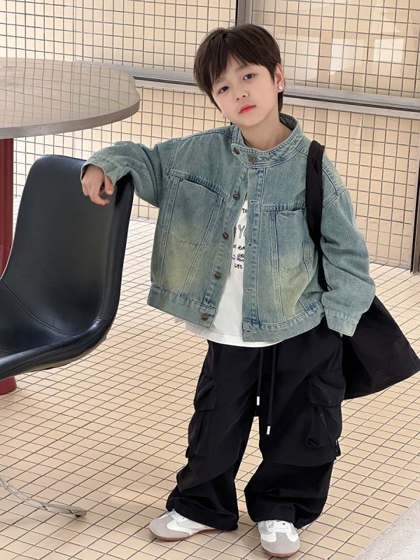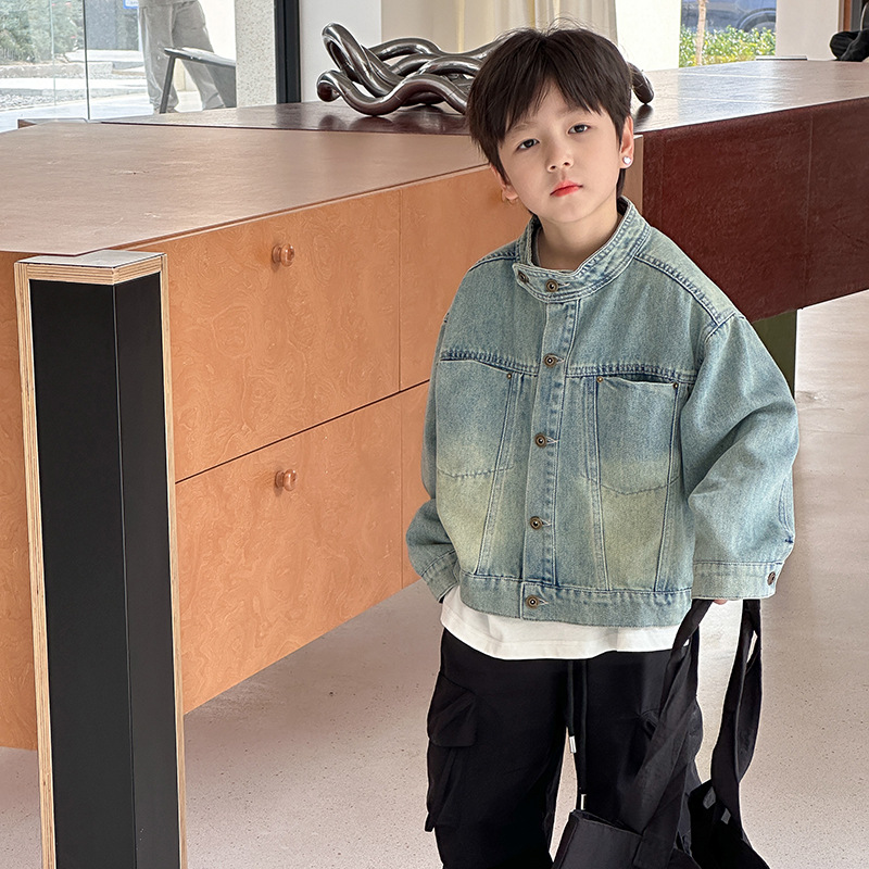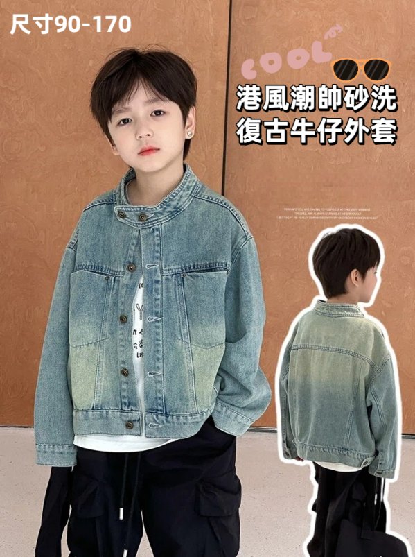 DMG25113童裝港風潮帥砂洗復古牛仔外套
