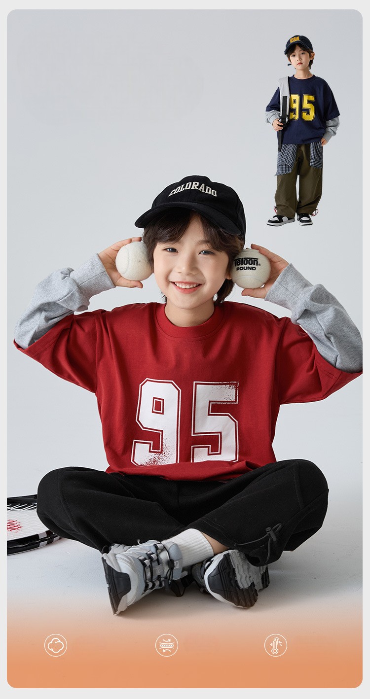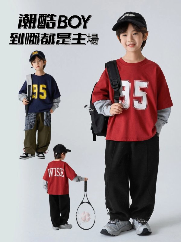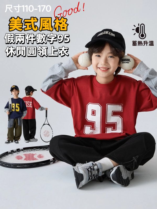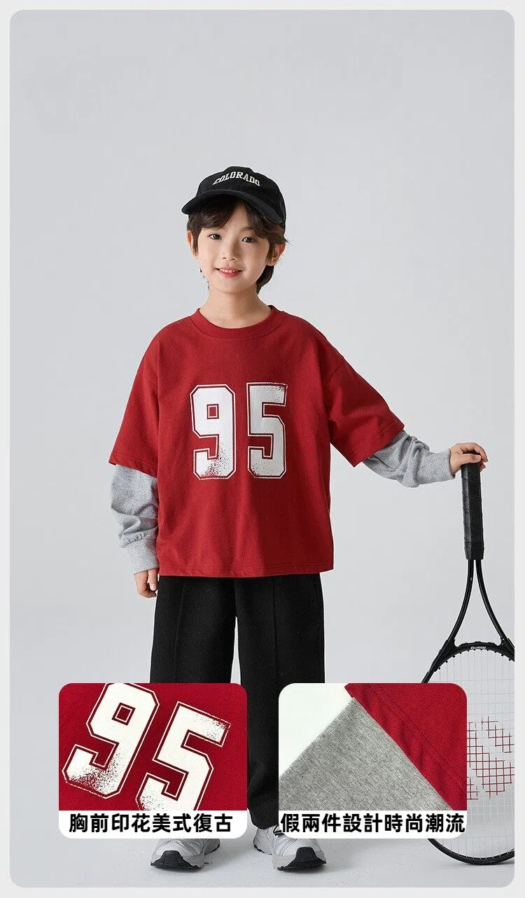 DHM551中大童美式風格數字95假兩件上衣