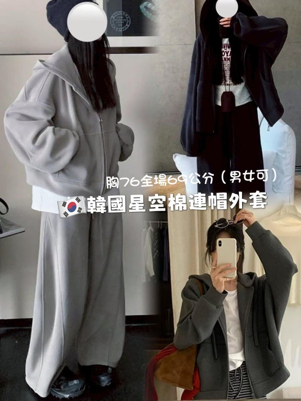WDH107522韓國寬長版星空棉連帽外套
