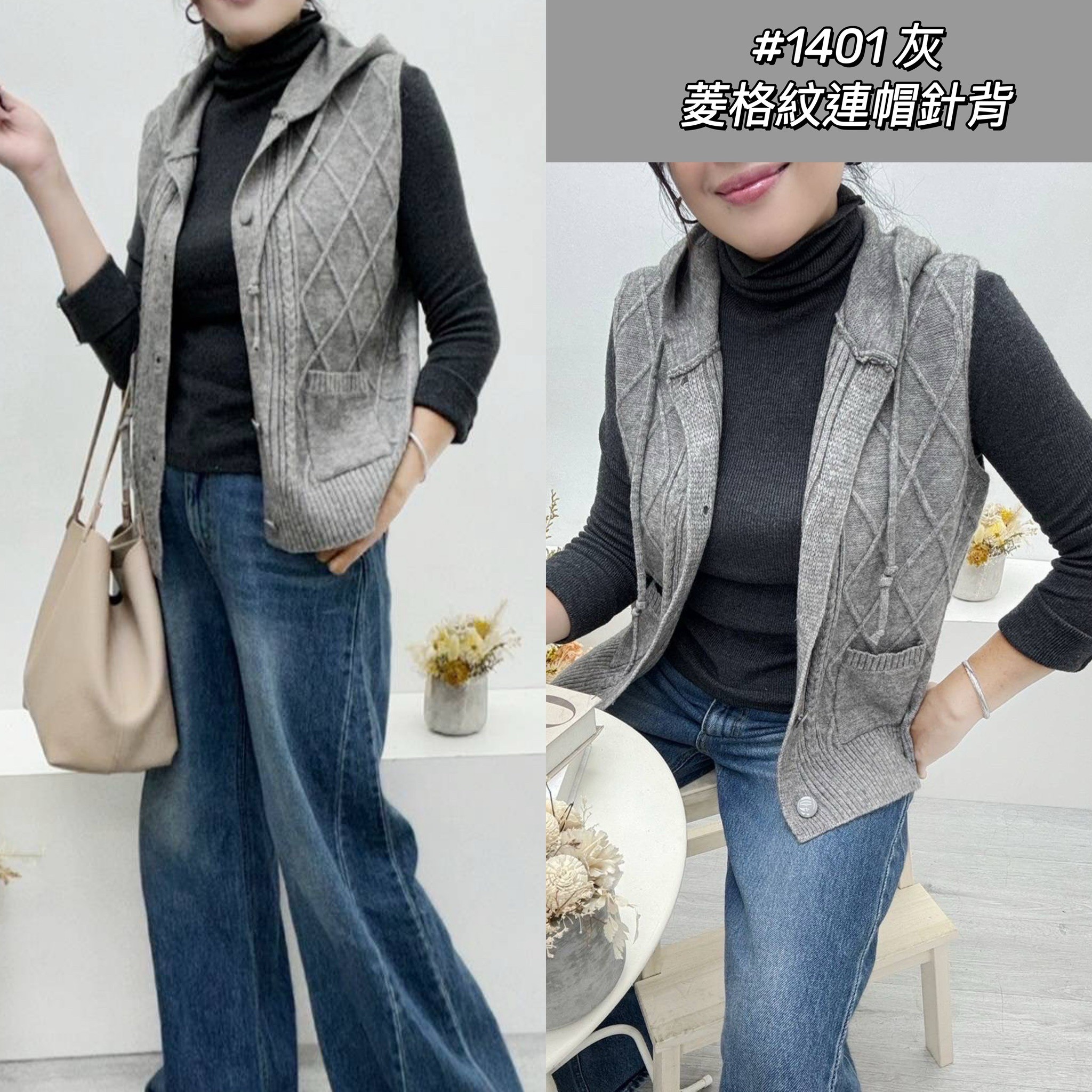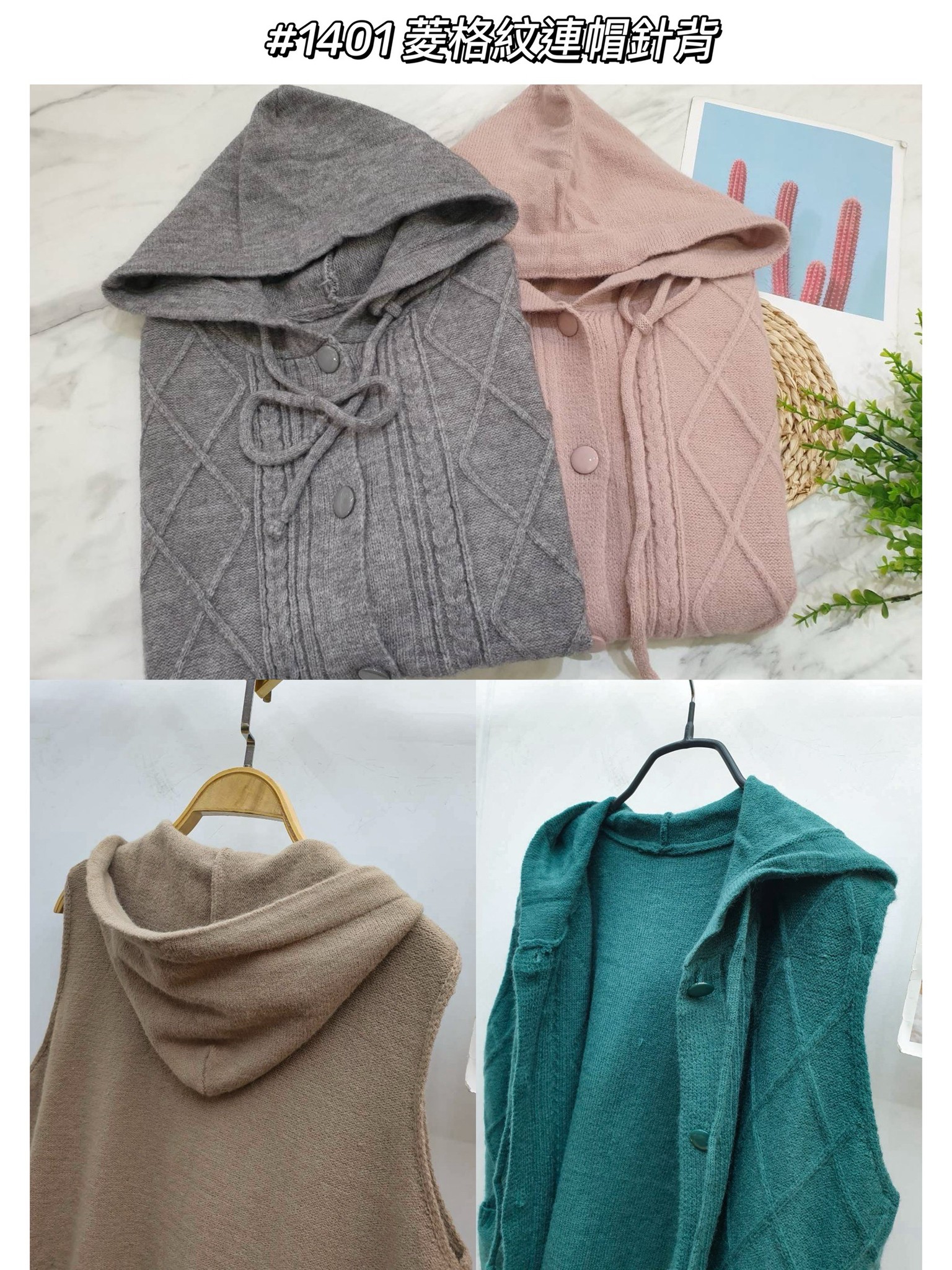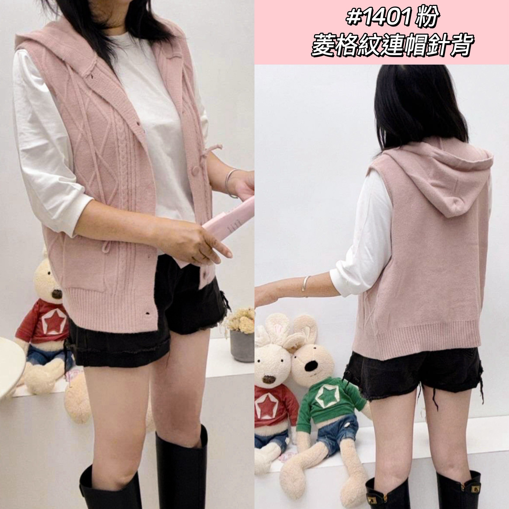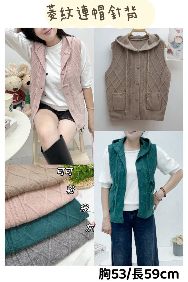 WGW1401女裝菱格紋連帽針背心
