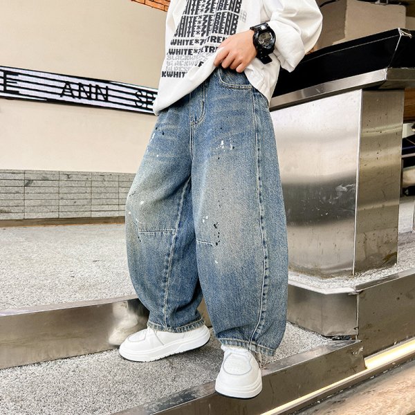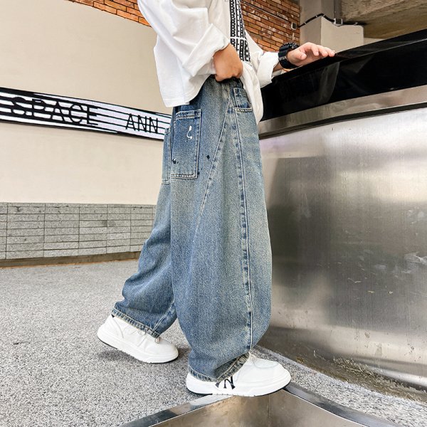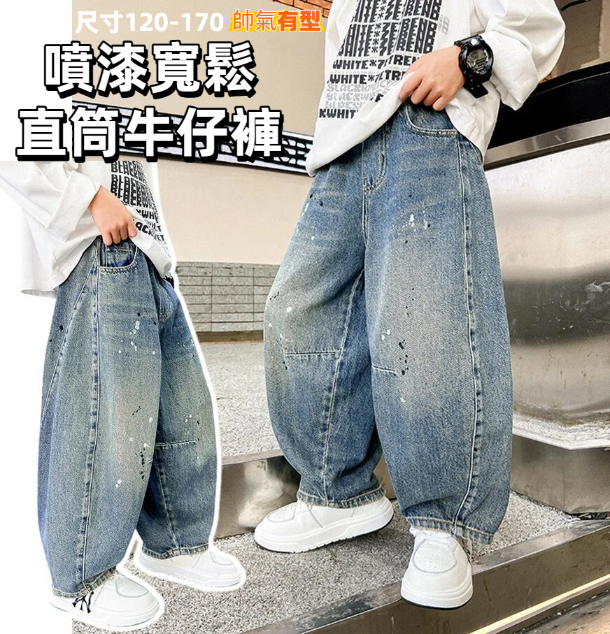 DSZ4822中大童噴墨寬鬆直筒牛仔褲