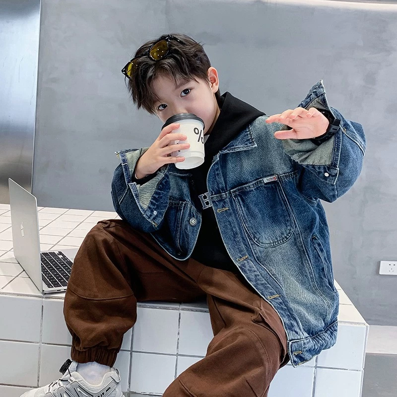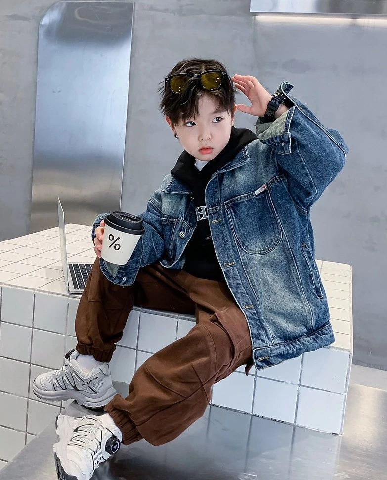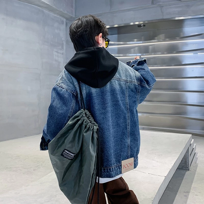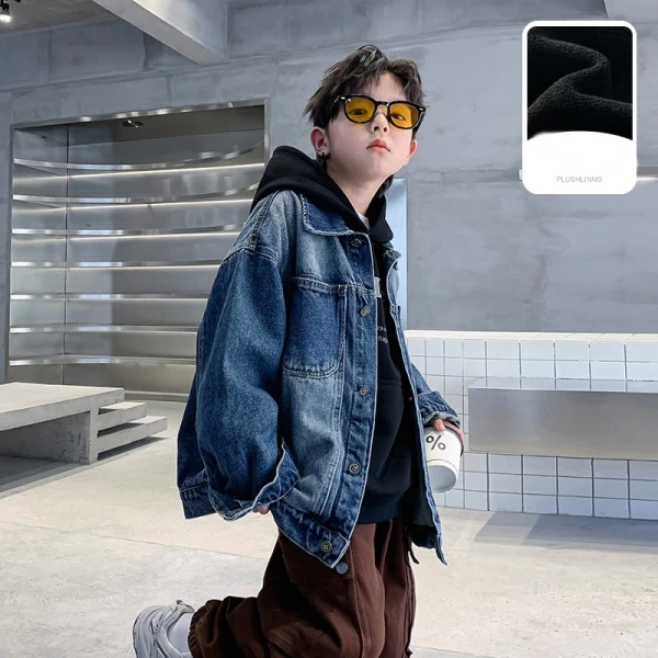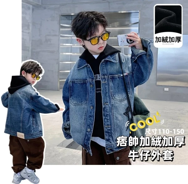 DSZ3561中大童痞帥加絨加厚牛仔外套