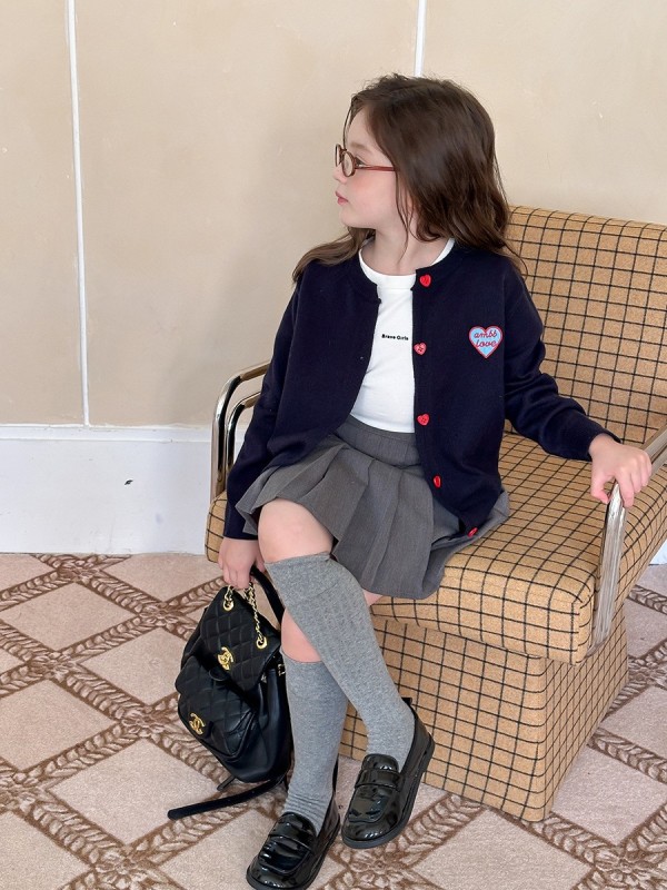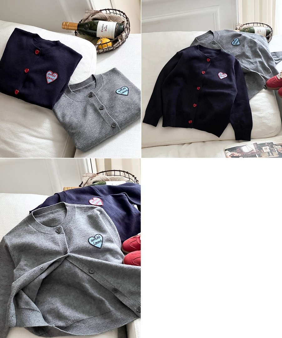DKG25101童裝愛心釦子刺繡貼布針織外套