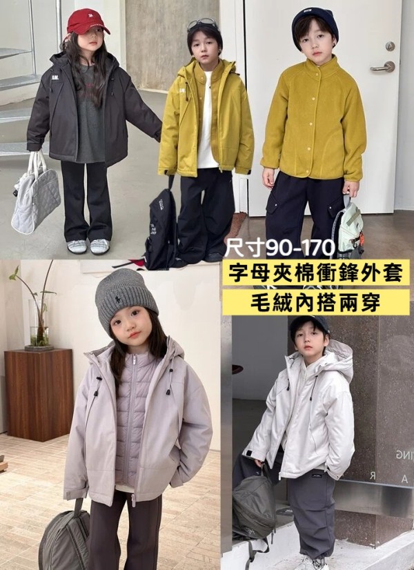 DKG25069男女童字母夾棉衝峰外套&毛絨內搭外套