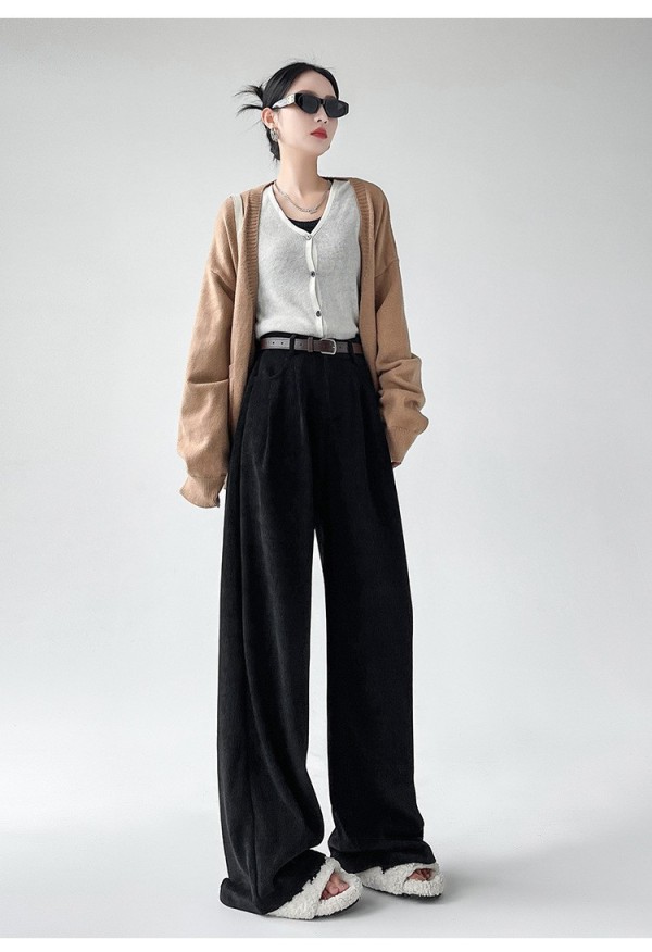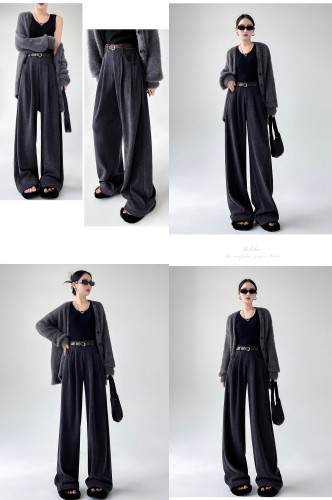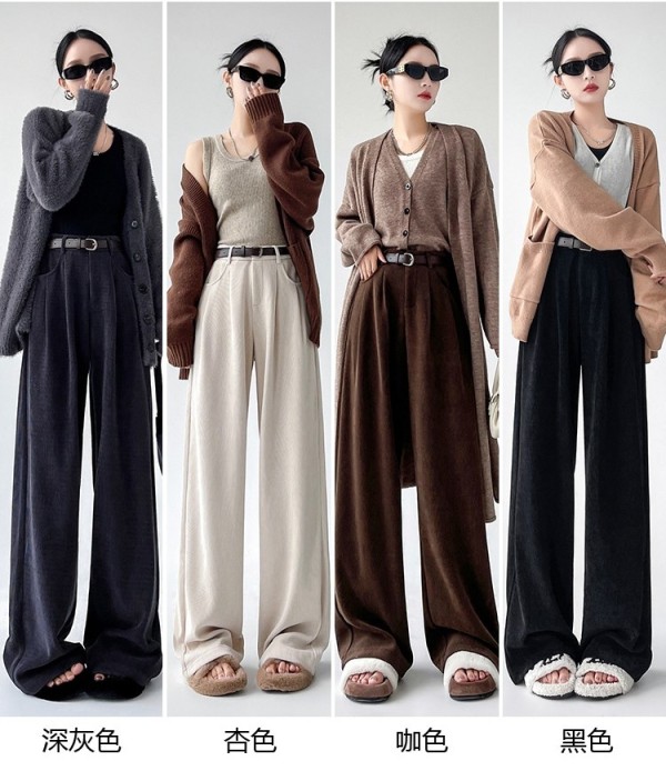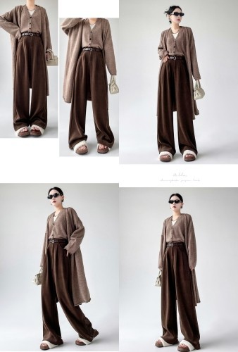 DND3026女裝雪尼爾坑紋美拉德長腿直筒落地褲