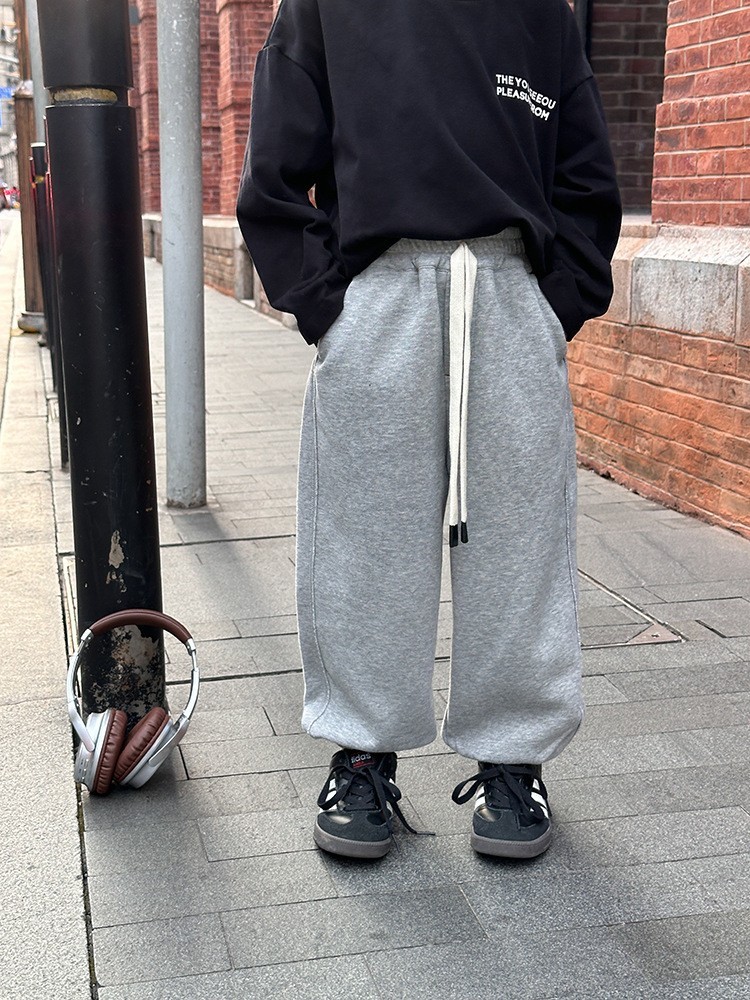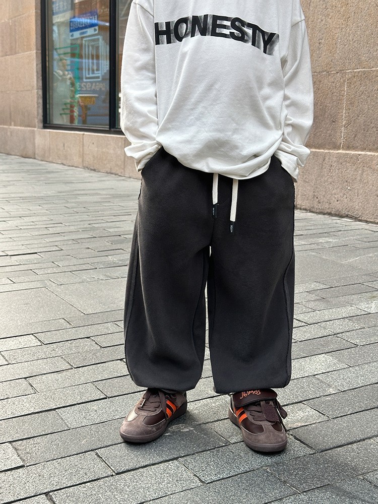 DMG24129童裝反車線素色束口運動休閒棉褲