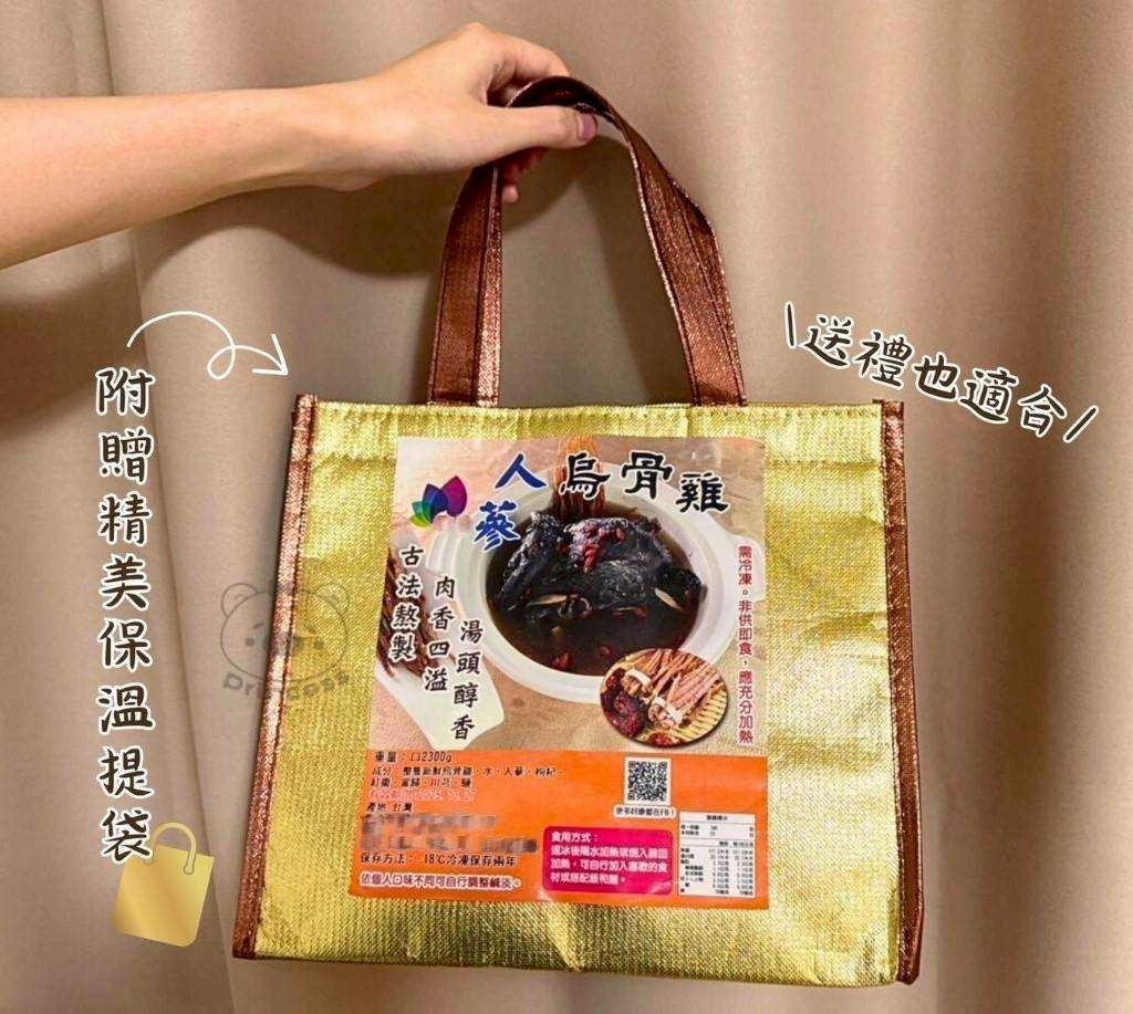 🟣烏骨雞還附贈精美的保冷袋,送長輩也非常適合!!冬天來了❄️多喝點雞湯可以暖暖身子還可以補充體力(I got this)湯頭天然無添加、喝的好安心!還有加入紅棗、枸杞、當歸、川芎等中藥材一同熬煮,清甜湯頭中帶有醇厚的香氣,喝過就知道他的好💯