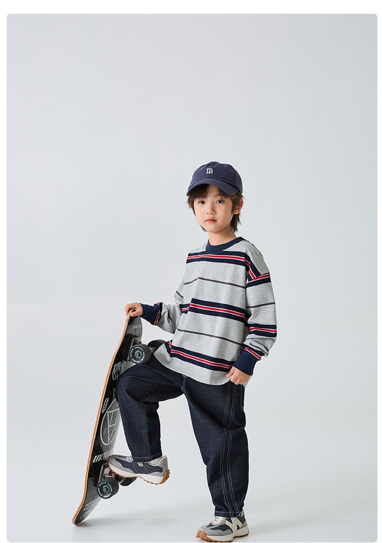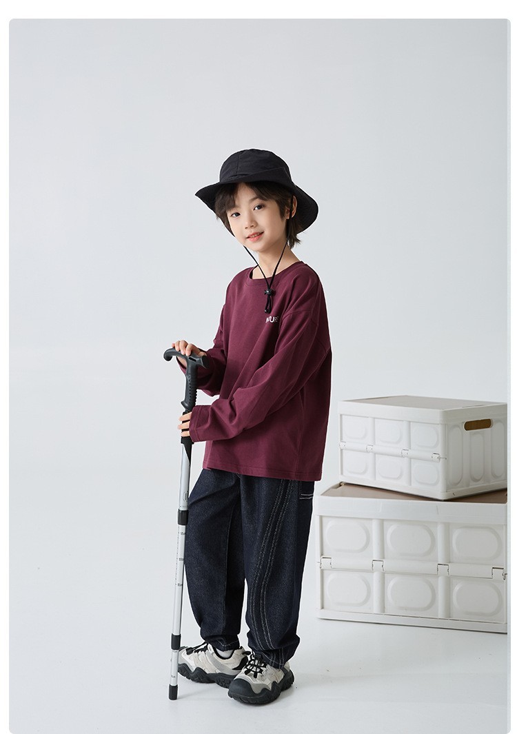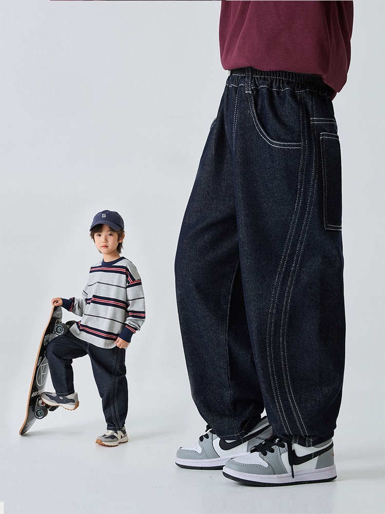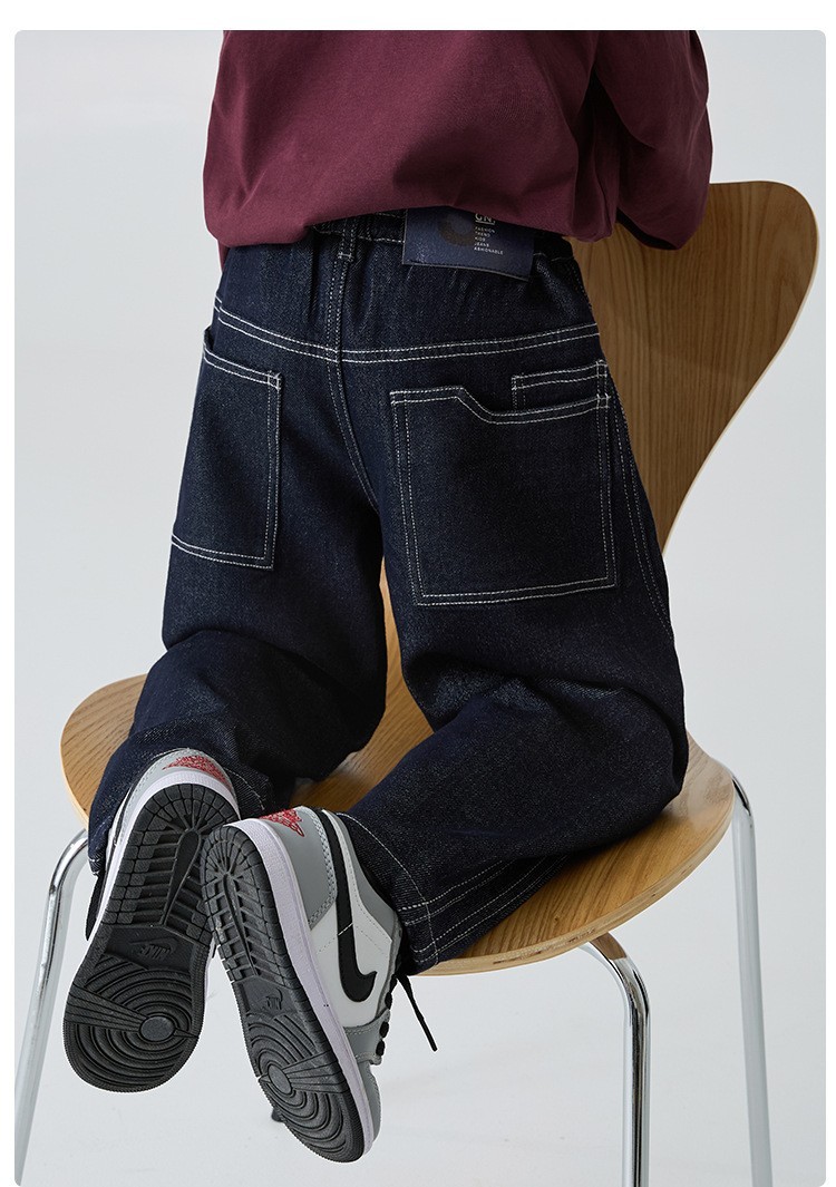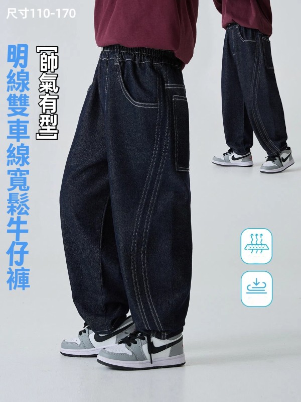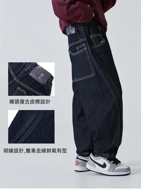 DHM501中大童明線雙車線寬鬆牛仔褲