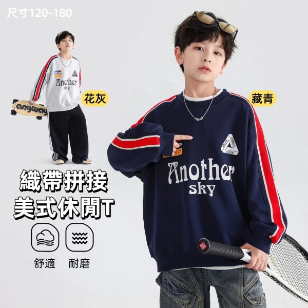 DHM551中大童美式風格織帶拼接休閒上衣