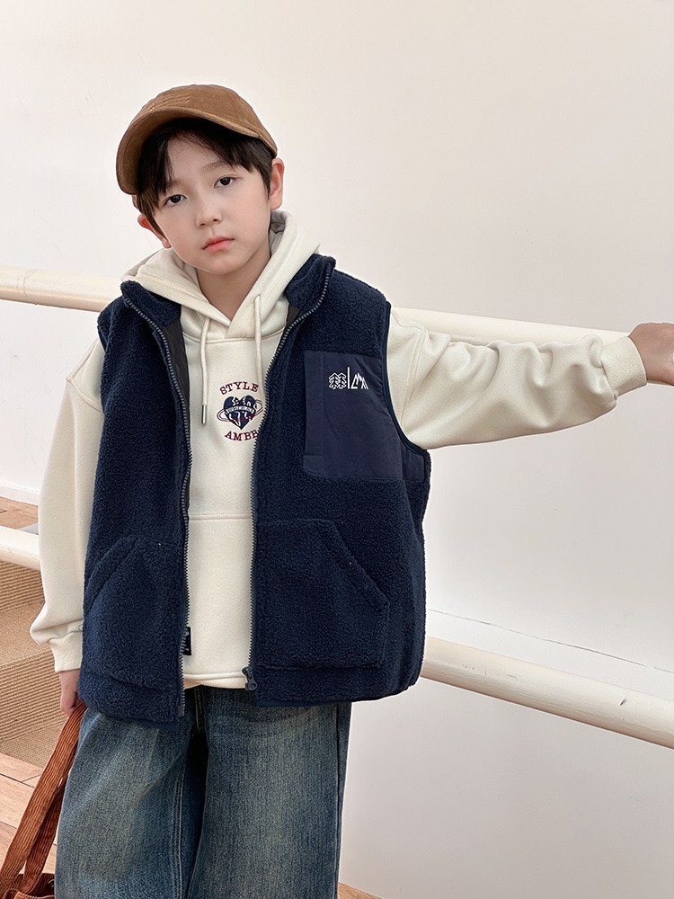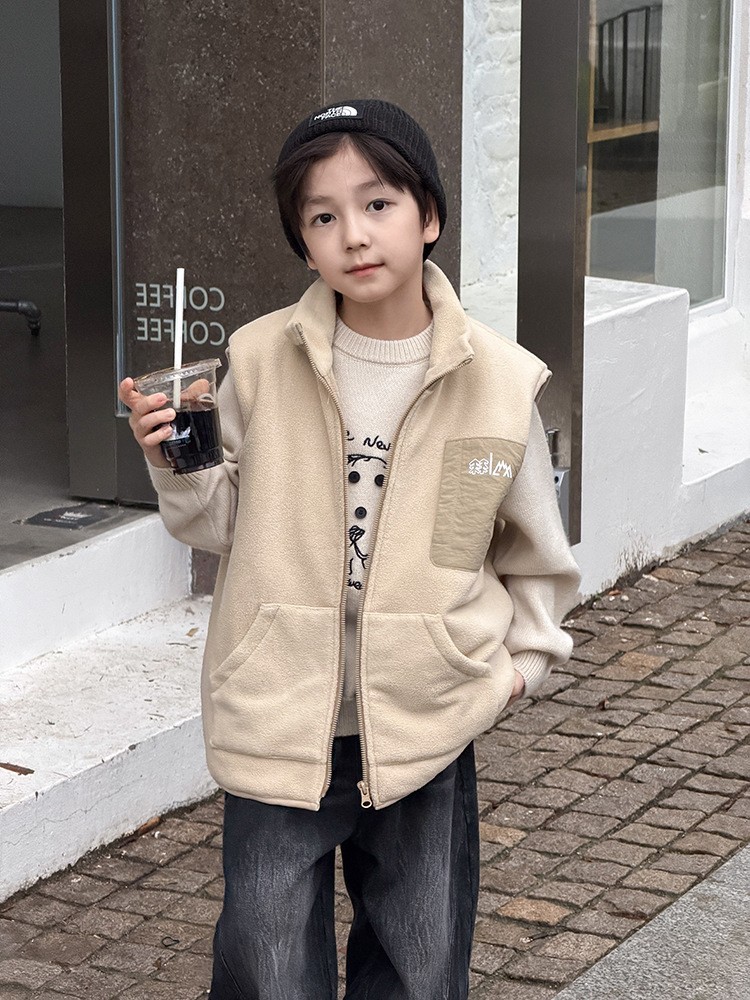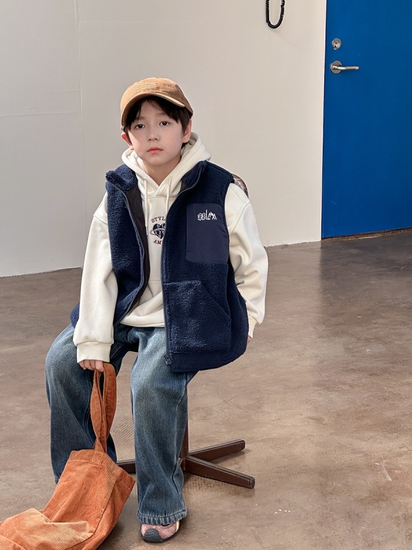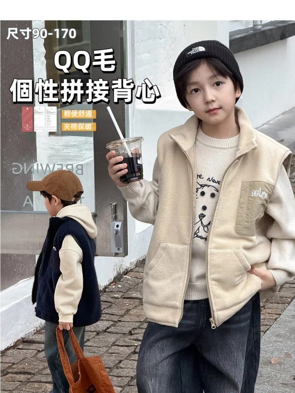 DMG25152童裝QQ毛個性拼接背心