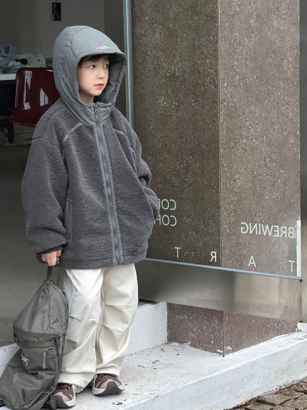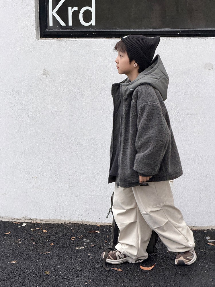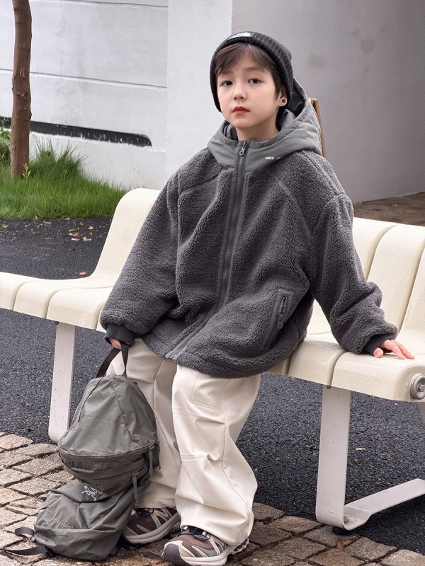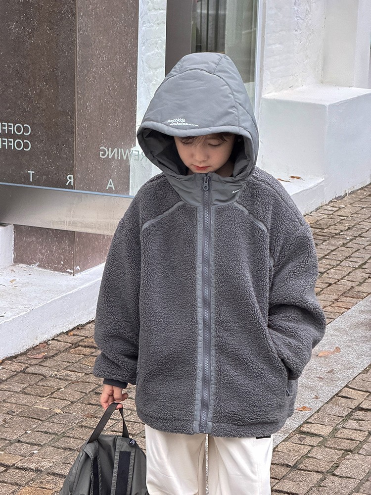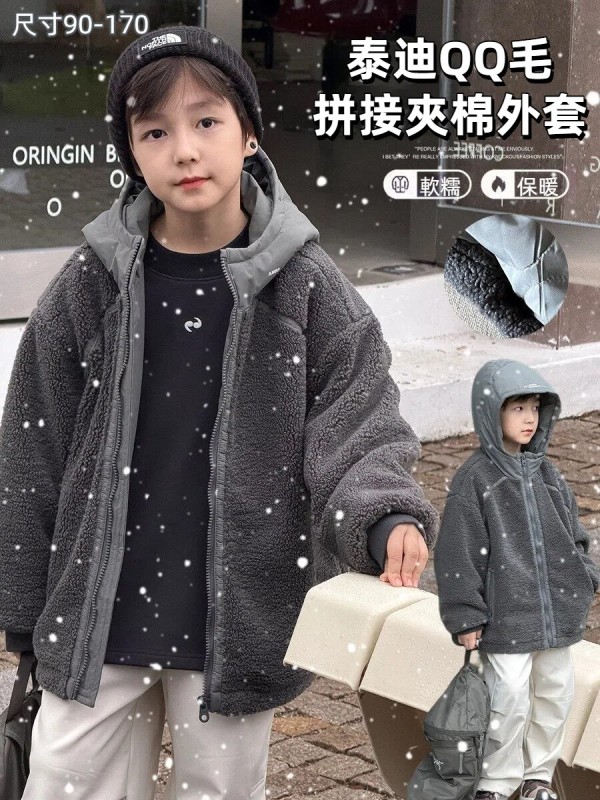 DMG25113童裝泰迪QQ毛拼接夾棉外套