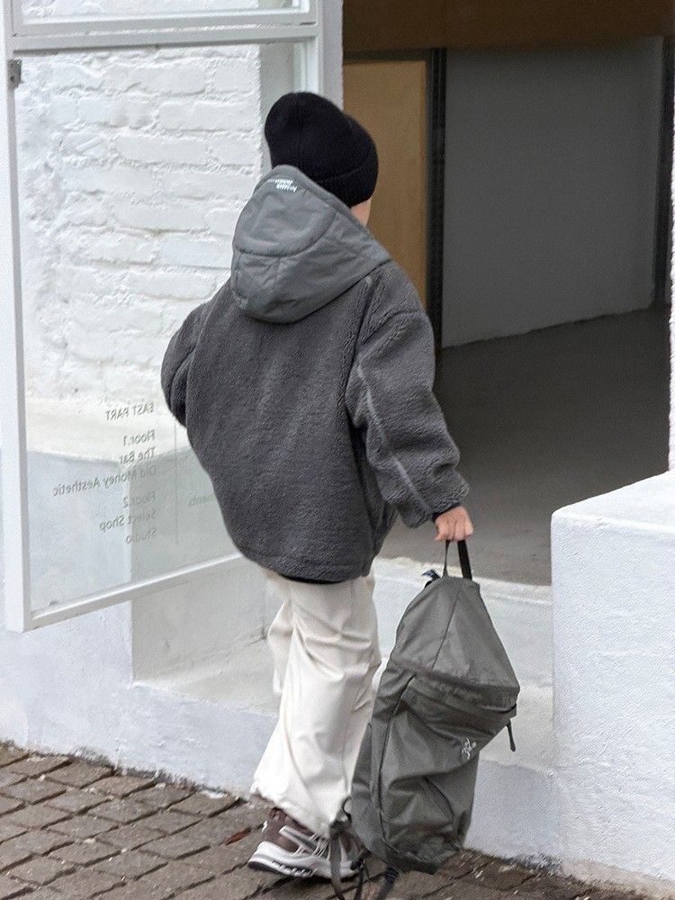 可愛的泰迪QQ毛,拼接連帽有點個性