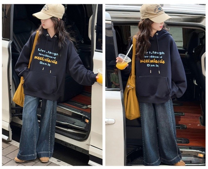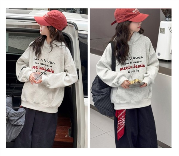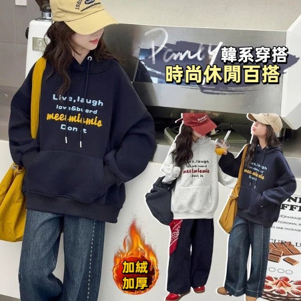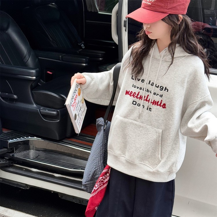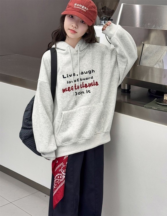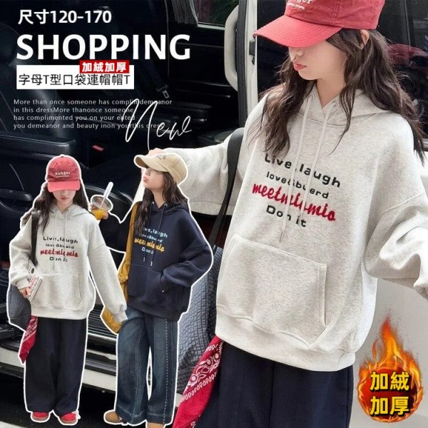 DJU5567中大童加厚字母T型口袋連帽帽T