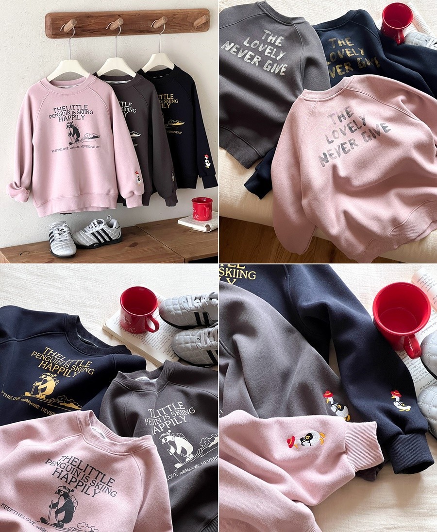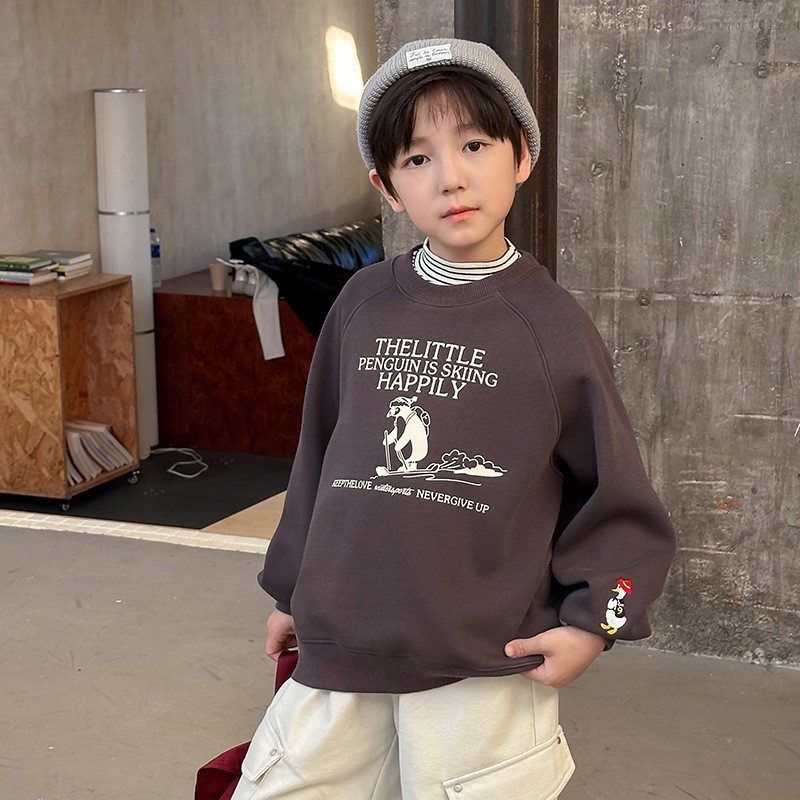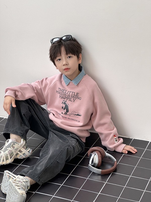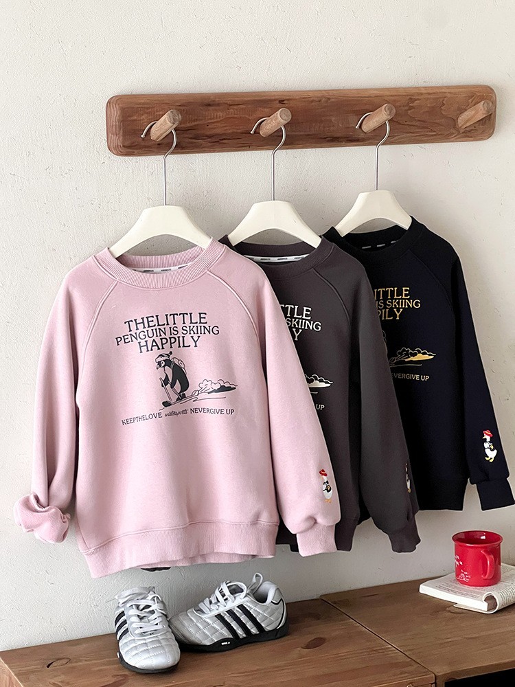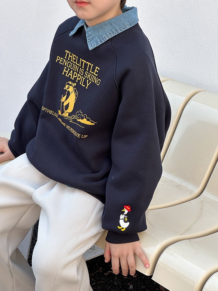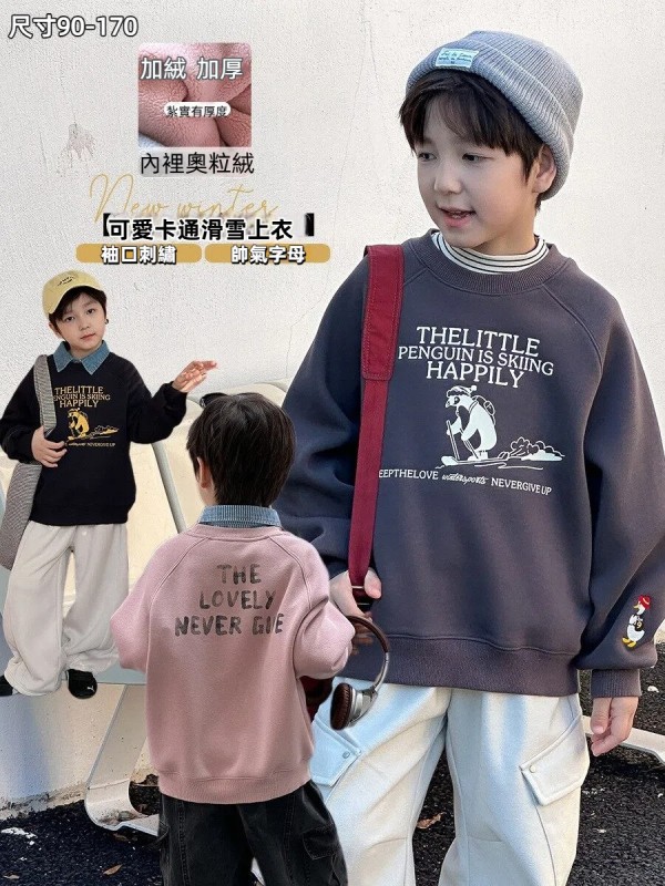 DKG25133童裝可愛字母卡通滑雪袖口可愛刺繡奧粒絨上衣